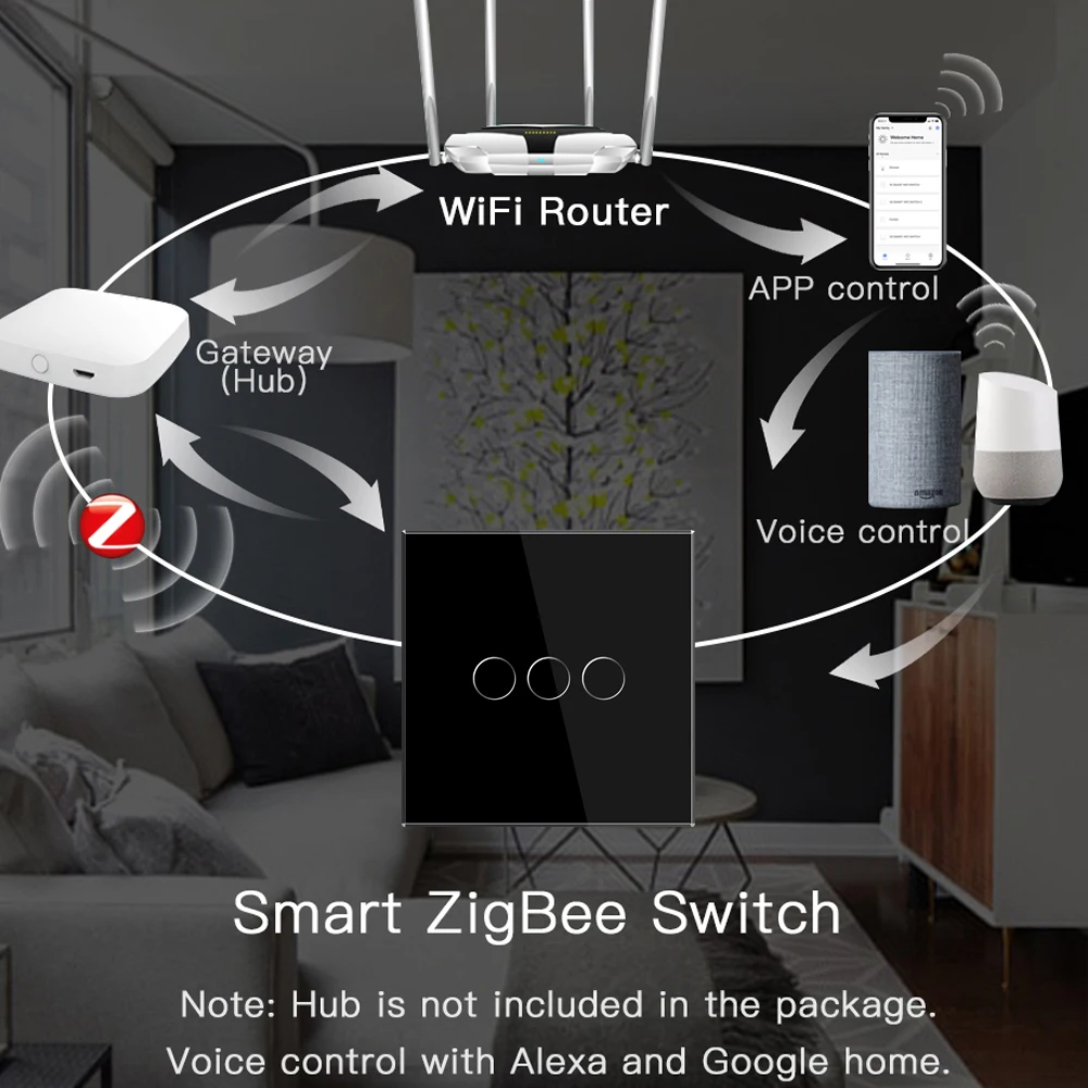Умный выключатель Zigbee Bseed, европейский стандарт, сенсорный переключатель с 3 клавишами, Wi-Fi, работает с Alexa Google Home, не требует нейтрального провода, 10 А