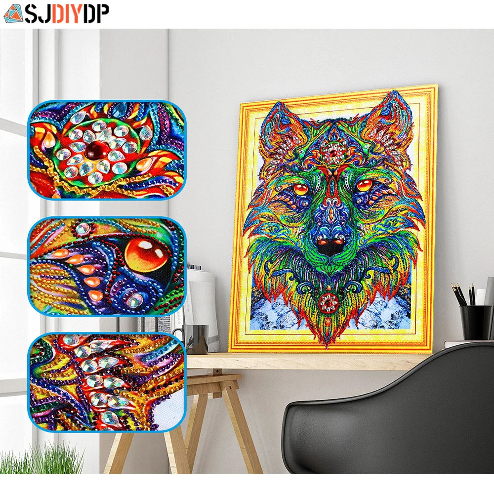 Набор для алмазной вышивки крестом SJDIYDP 5D, вышивка с изображением животных, волка, тигра, декоративный подарок