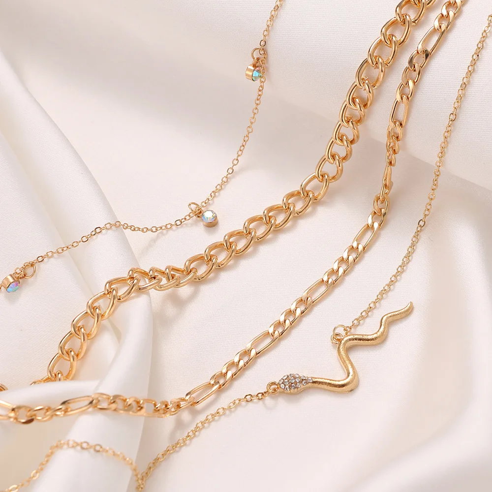 Женский многослойный комплект из колье и цепочки, золотистого цвета