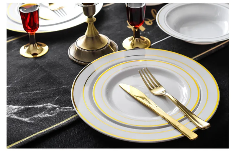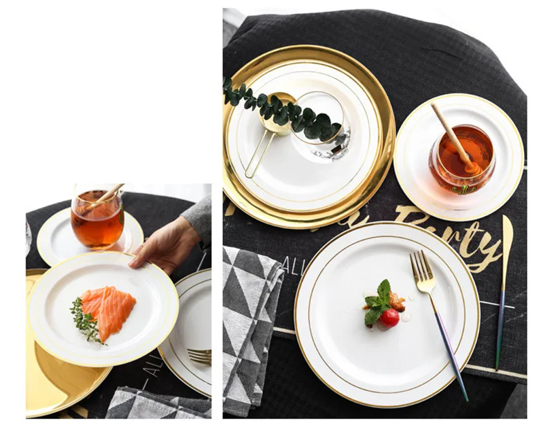Золотой одноразовые Пластик в западном стиле с суповую тарелку, производство Китай ужин вечерние пластина стейк торт салат Технические характеристики пластинчатого солнечного 10 шт.