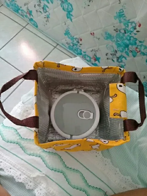 A bolsa é fofa, mas não é isolante térmica como informado, pois não fecha completamente, e não tem zíper, só fecha um pedacinho de velcro. Possui um tamanho adequado para levar frutas, marmita e suco. Paguei R$1,12, então o custo benefício está ótimo, mas não pagaria mais de R$20,00