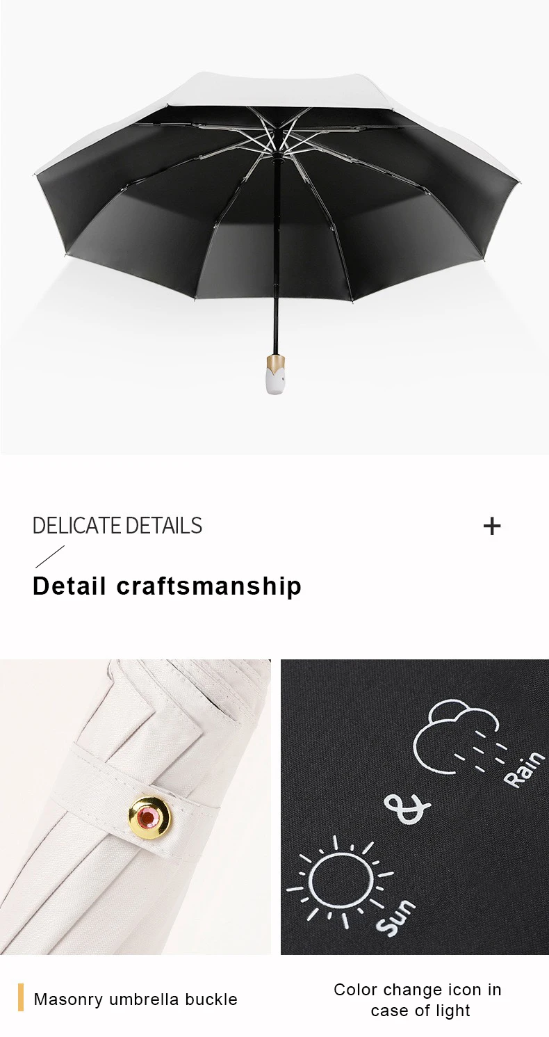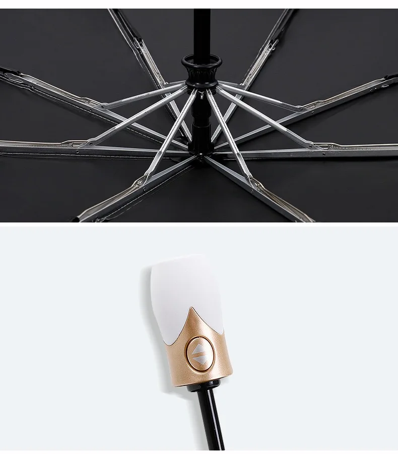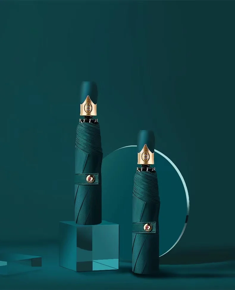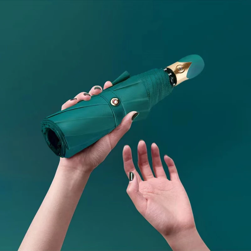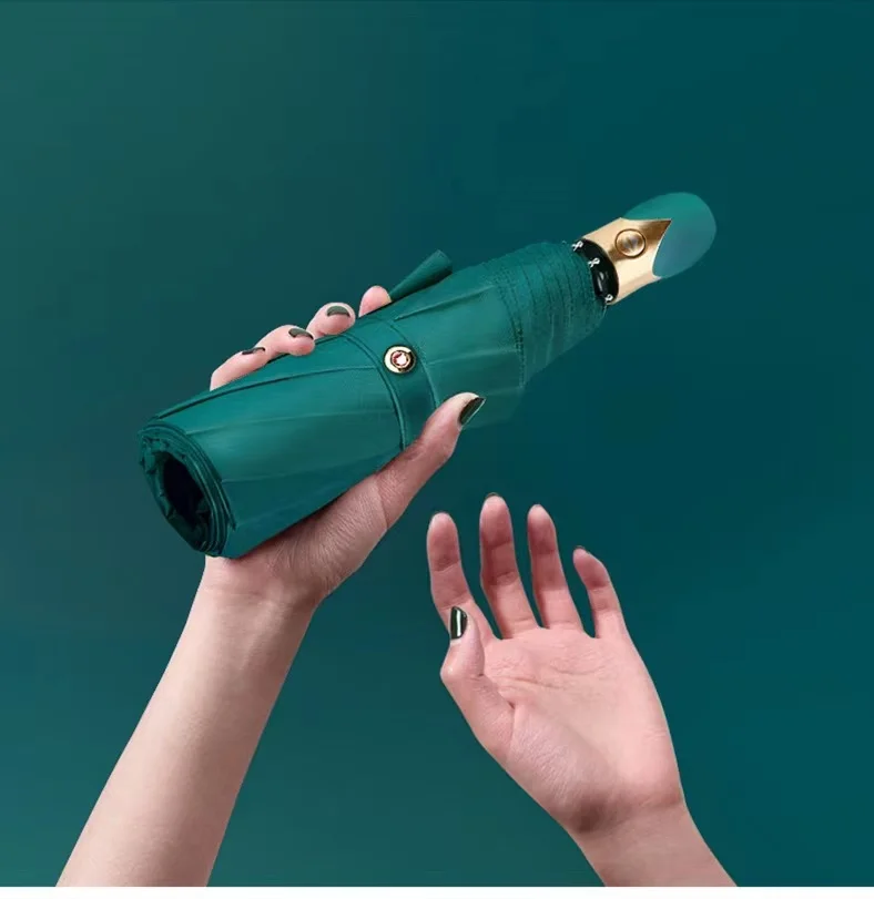 Высококачественный автоматический зонт для дождливой погоды, Женский трехскладной зонт, ветрозащитный однотонный зонт, женский водонепроницаемый зонт