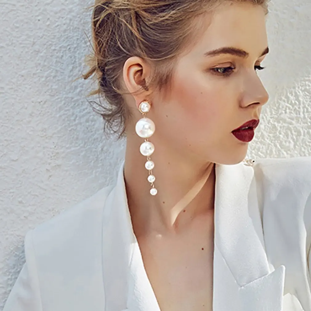 Модные жемчужные серьги, винтажные длинные висячие элегантные свадебные Висячие серьги для женщин, модные ювелирные изделия, подарки