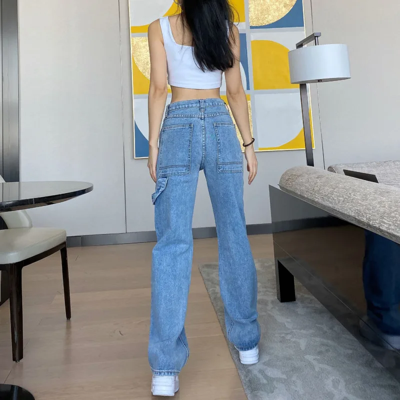 2021 женские джинсы мешковатые дымчатые Серые Синие элегантные широкие брюки-карго для девушек Прямые повседневные свободные джинсы с высокой талией для