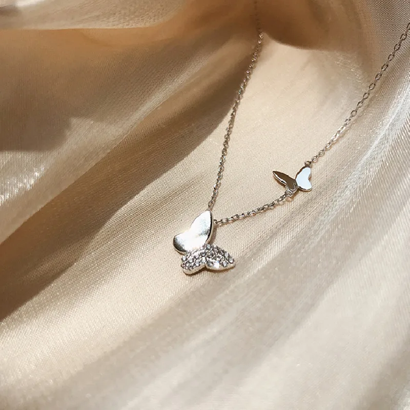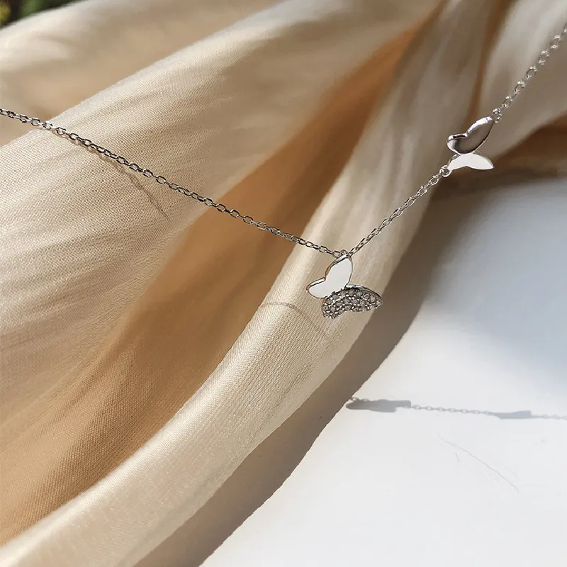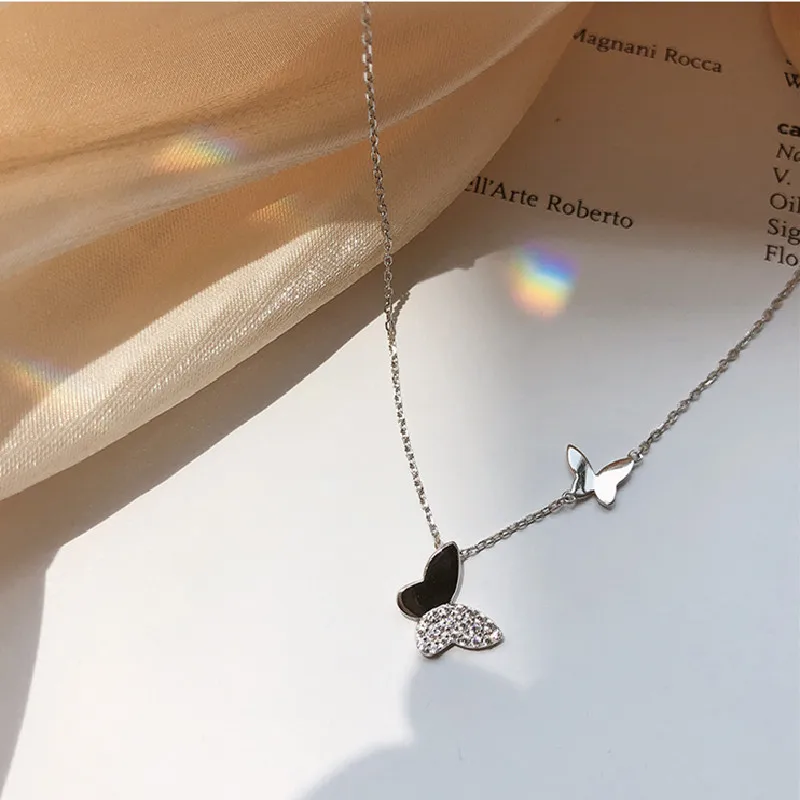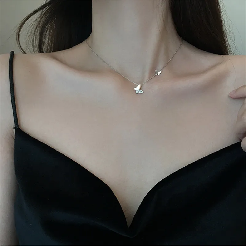 QMCOCO Новинка 925 Серебряный Циркон Двойная Бабочка кулон ожерелья для женщин очаровательные модные ювелирные изделия для вечеринки свадебные подарки украшение