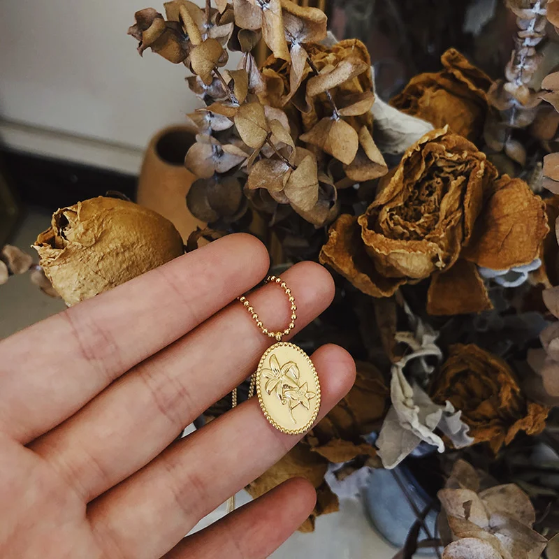 Женская цепочка из нержавеющей стали, длинная цепочка-подвеска в готическом стиле, золотистого цвета, ожерелье с лилией, 2021