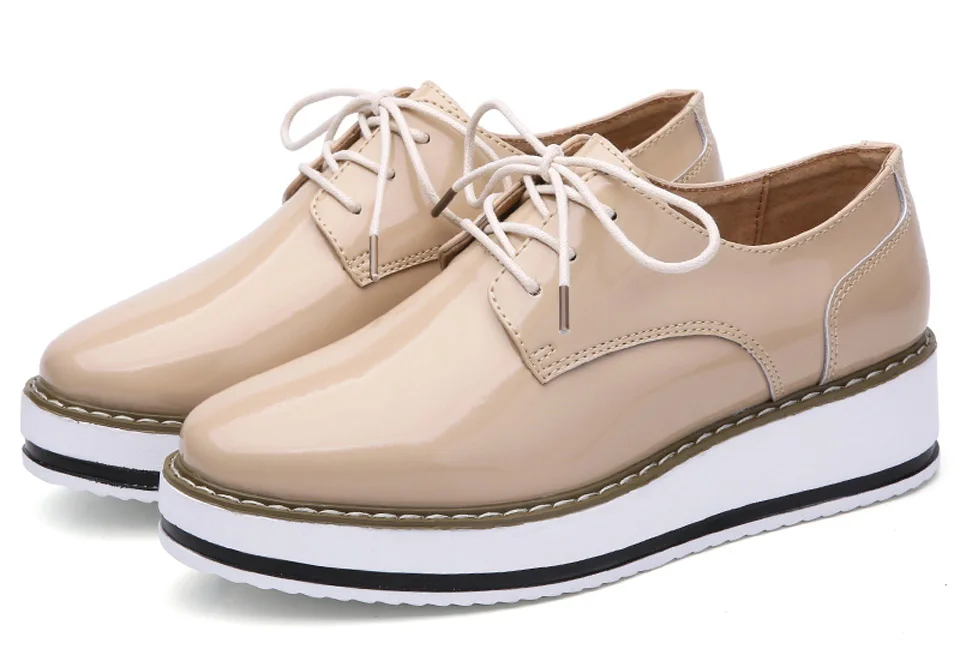 Женские туфли на платформе, броги, Дерби, лакированная кожа, плоска...