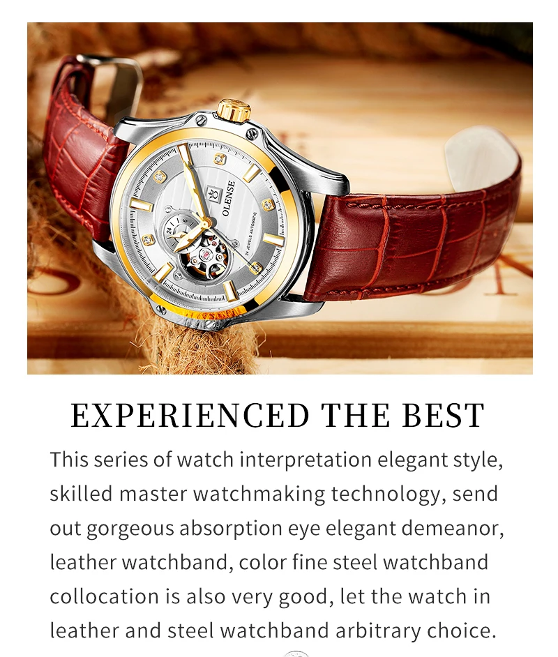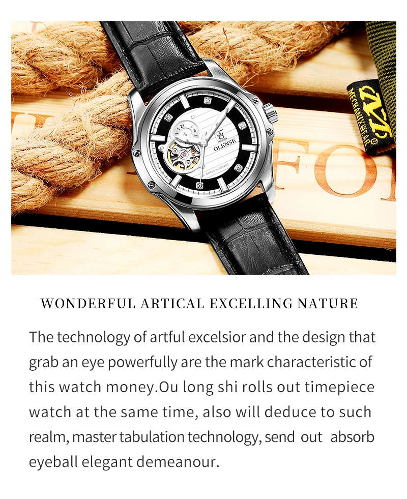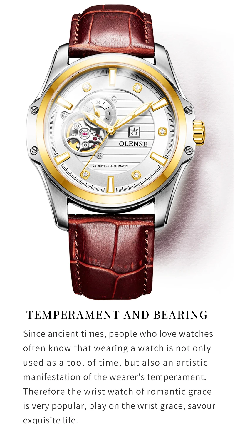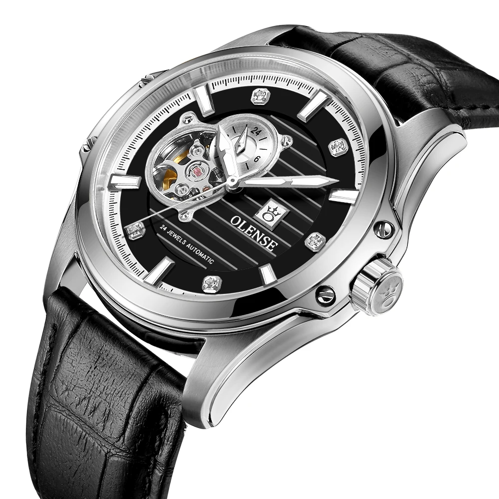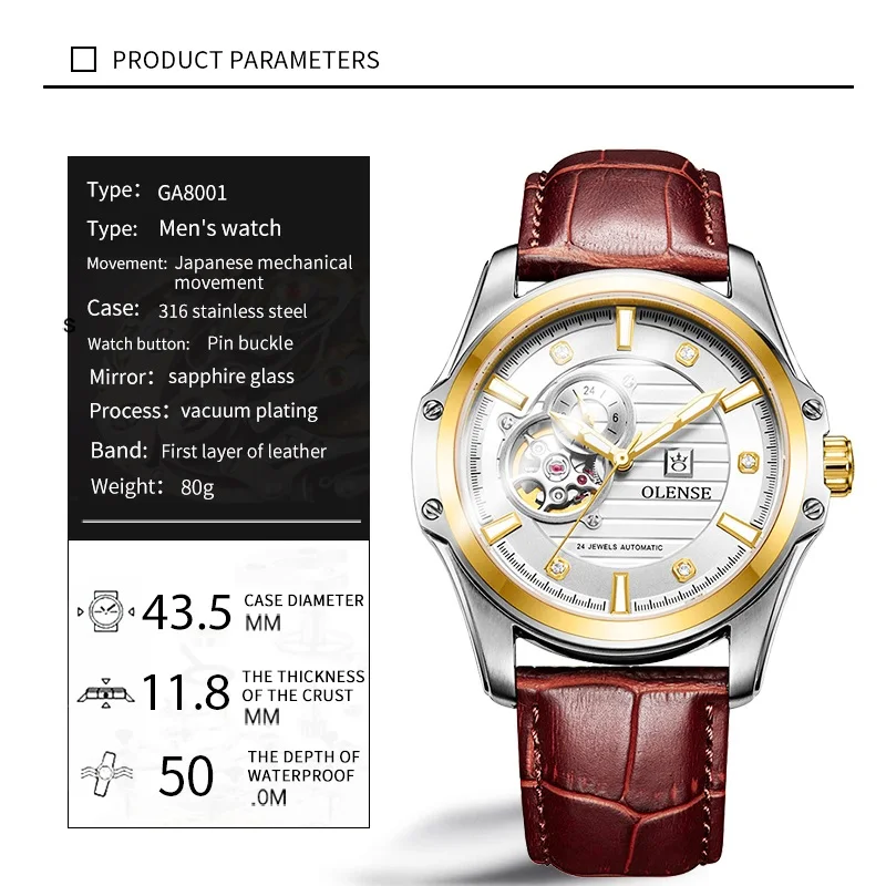 Роскошные мужские часы Автоматические OLENSE GA8001, 5 АТМ, водонепроницаемые часы для мужчин сапфировое стекло механические часы с ремешком из натуральной кожи