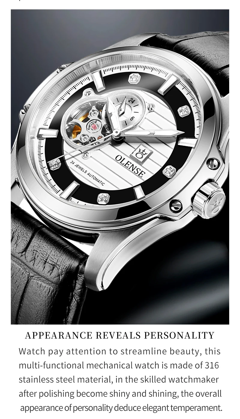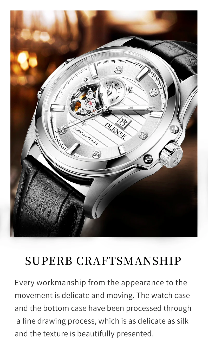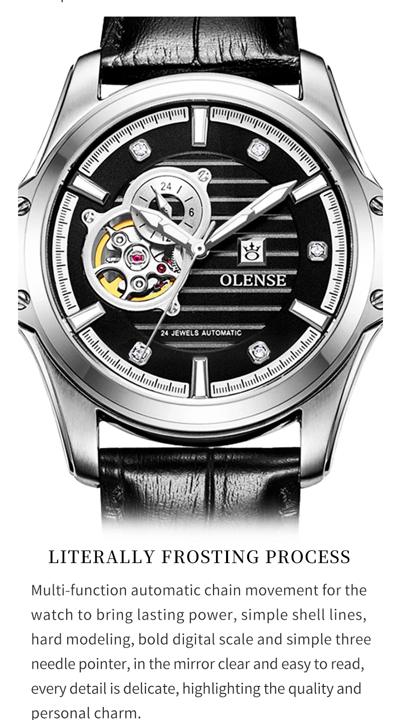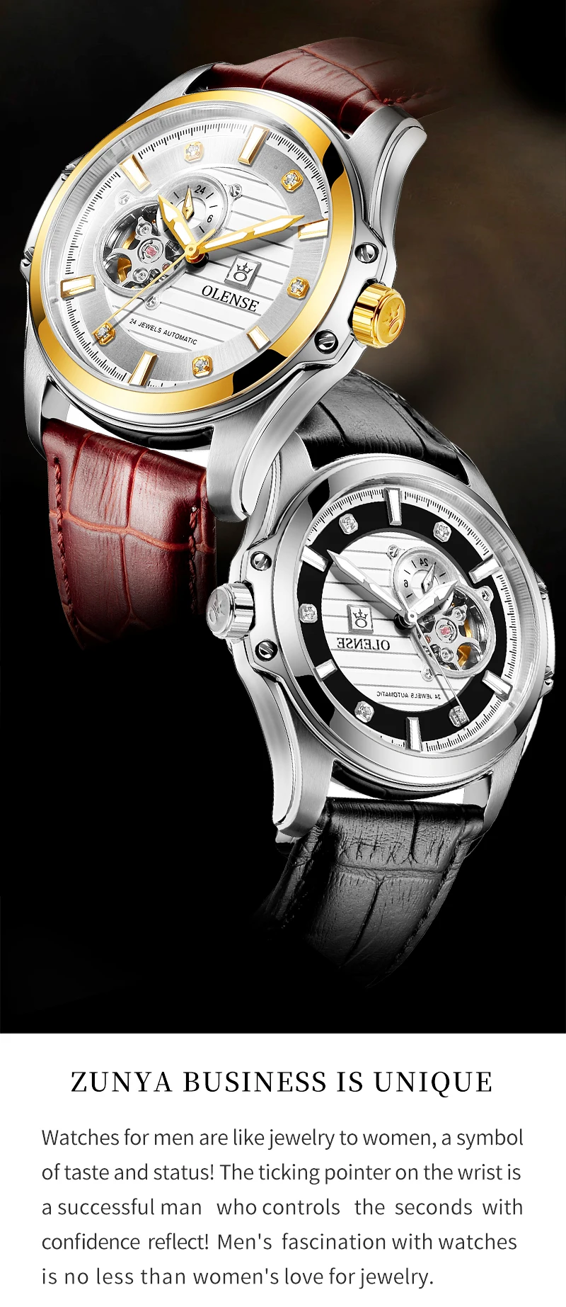 Роскошные мужские часы Автоматические OLENSE GA8001, 5 АТМ, водонепроницаемые часы для мужчин сапфировое стекло механические часы с ремешком из натуральной кожи