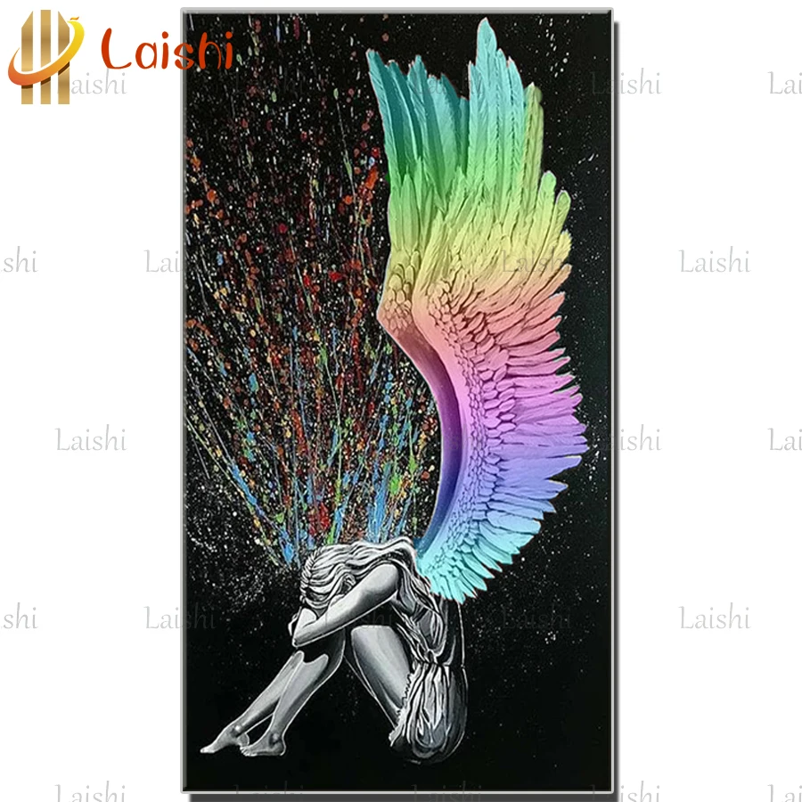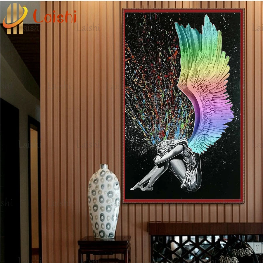 5d алмазная живопись сделай сам, рисование Фантастический ангел с красочными крыльями, мозаика, алмазная картина, полноразмерный квадратный Круглый Алмазный Декор