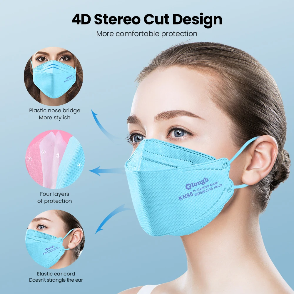Elough Fish маска KN95, цвета масок FFP2 для взрослых, 4-слойная, г...