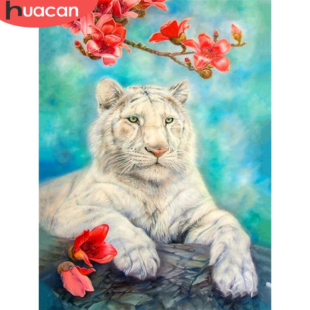 HUACAN полностью квадратная круглая Алмазная картина мозаика с тигром Алмазная вышивка Животные вышивка крестом Рукоделие Искусство украшение дома