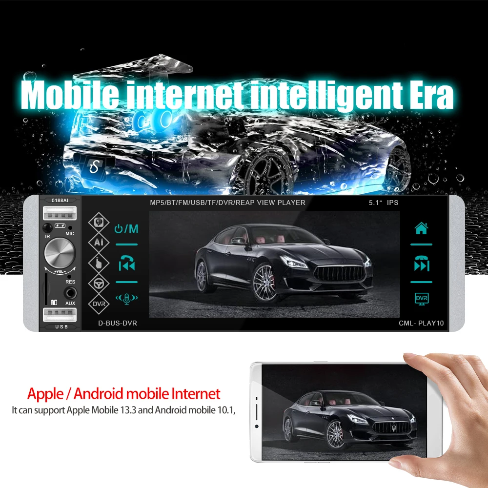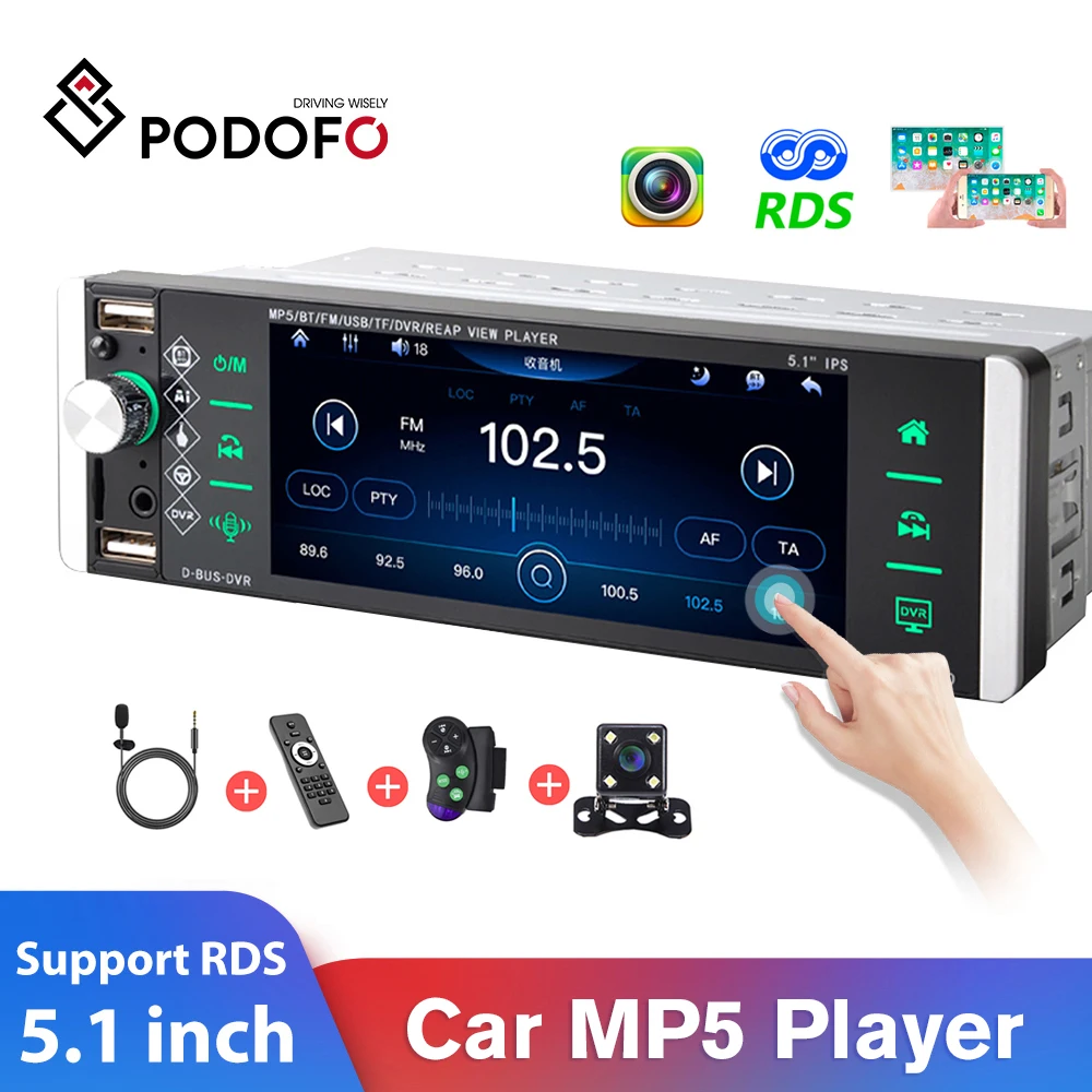 Автомагнитола Podofo 1Din, 5188 дюйма, Bluetooth, MP5, RDS, AM, FM