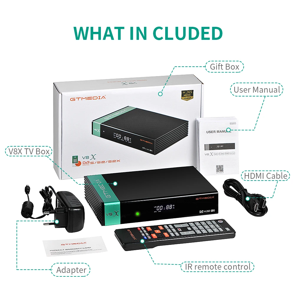 Приемник спутникового телевидения GTMEDIA V8X DVB S2 IPTV HEVC H.265 рецептор для ИспанииГерманииИталииПольшиПортугалии тюнер телеприставка