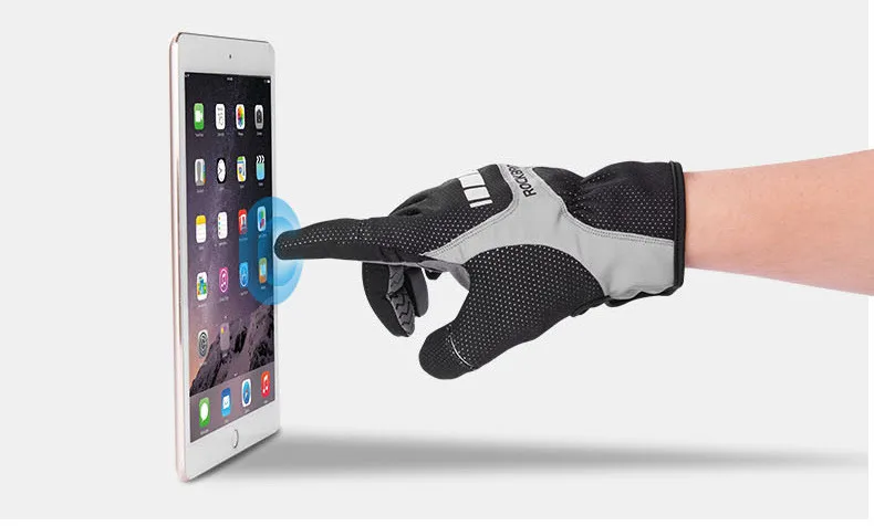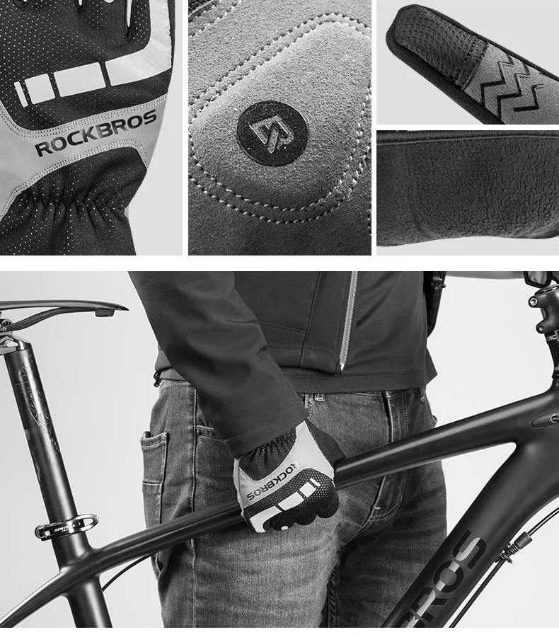 Велосипедные перчатки ROCKBROS, термозащитные противоударные спортивные митенки с пальцами, для сенсорных экранов, защита от ветра