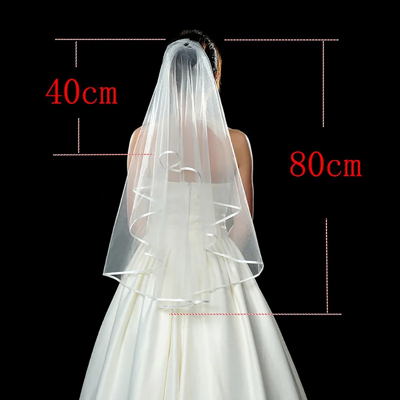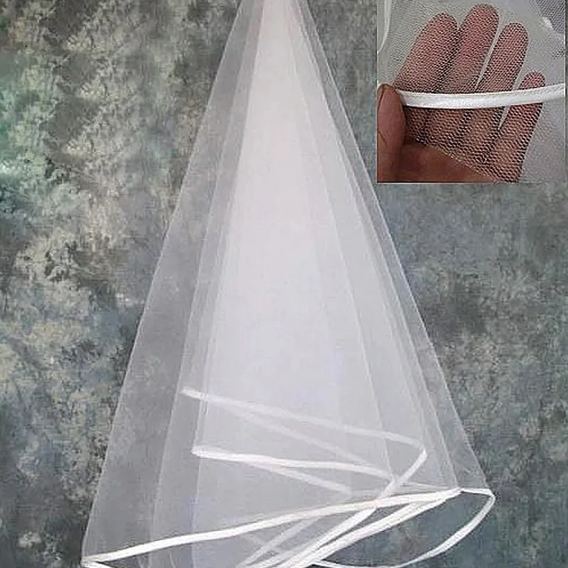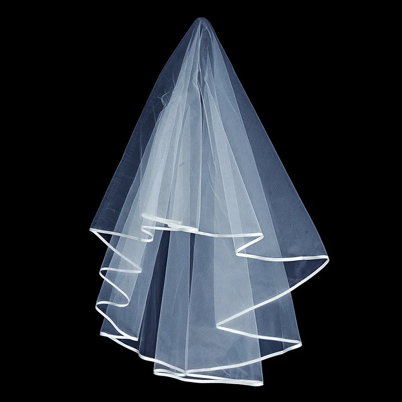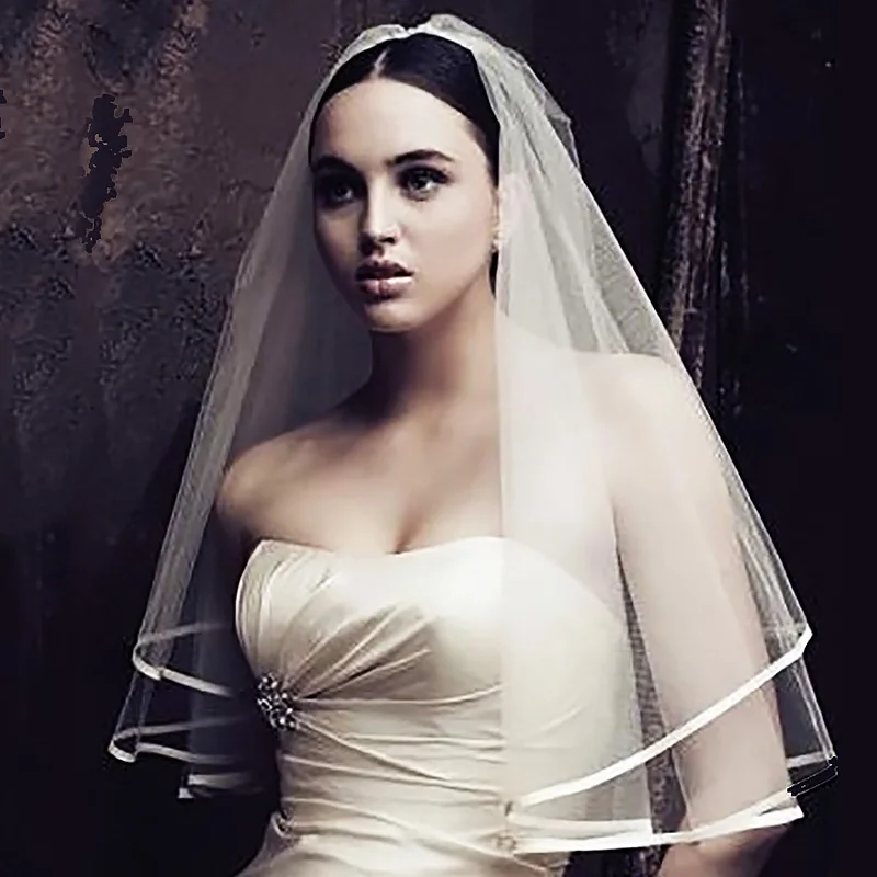 Фата свадебная двухслойная короткая, Классическая Тюлевая, с лентой по краю, для невесты, 150 см