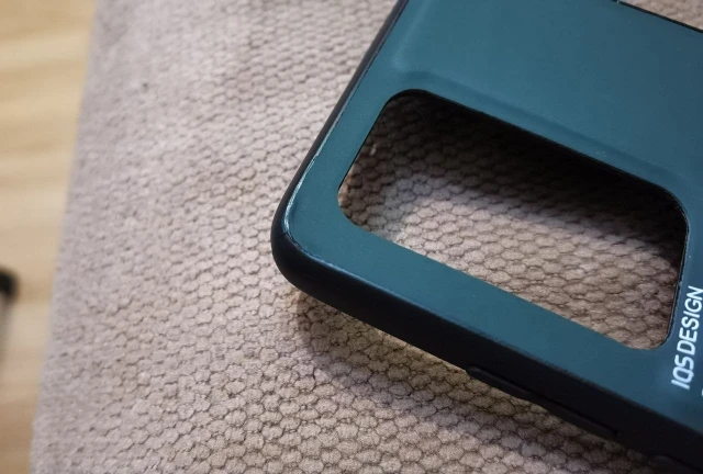 Неплохое качество. Выглядит как на фото. Внутренняя поверхность не мягкая, пластик. Блок камер телефона утоплен относительно чехла. Есть один небольшой минус - в левом верхнем углу, где блок камер, плохо проклеен материал, как-будто он не заправлен в окантовку - на фото.