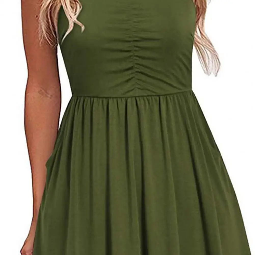 Женское платье без рукавов, с открытой спиной, со складками, средней длины