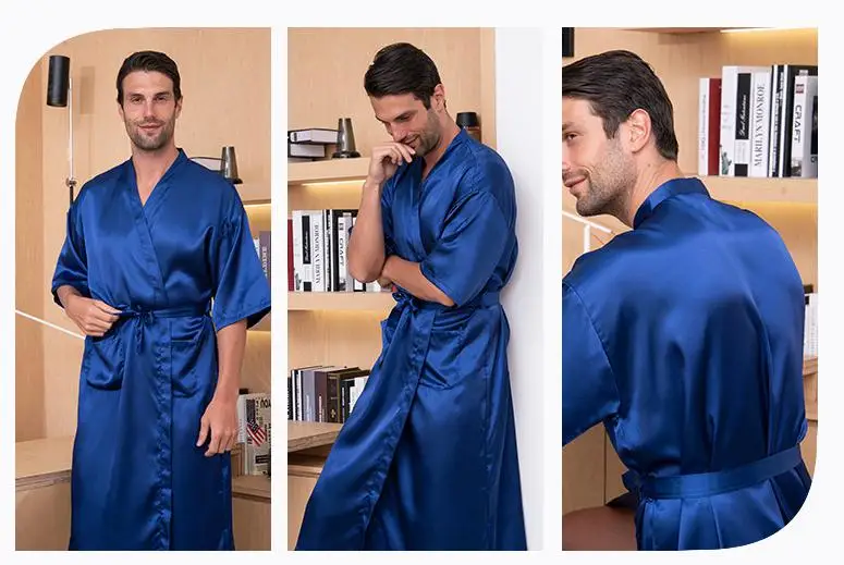Халат-кимоно мужской с коротким рукавом, халат для жениха, вискозное нижнее белье, свободная одежда для отдыха и ванны, домашняя одежда, на лето