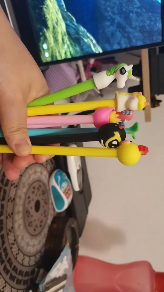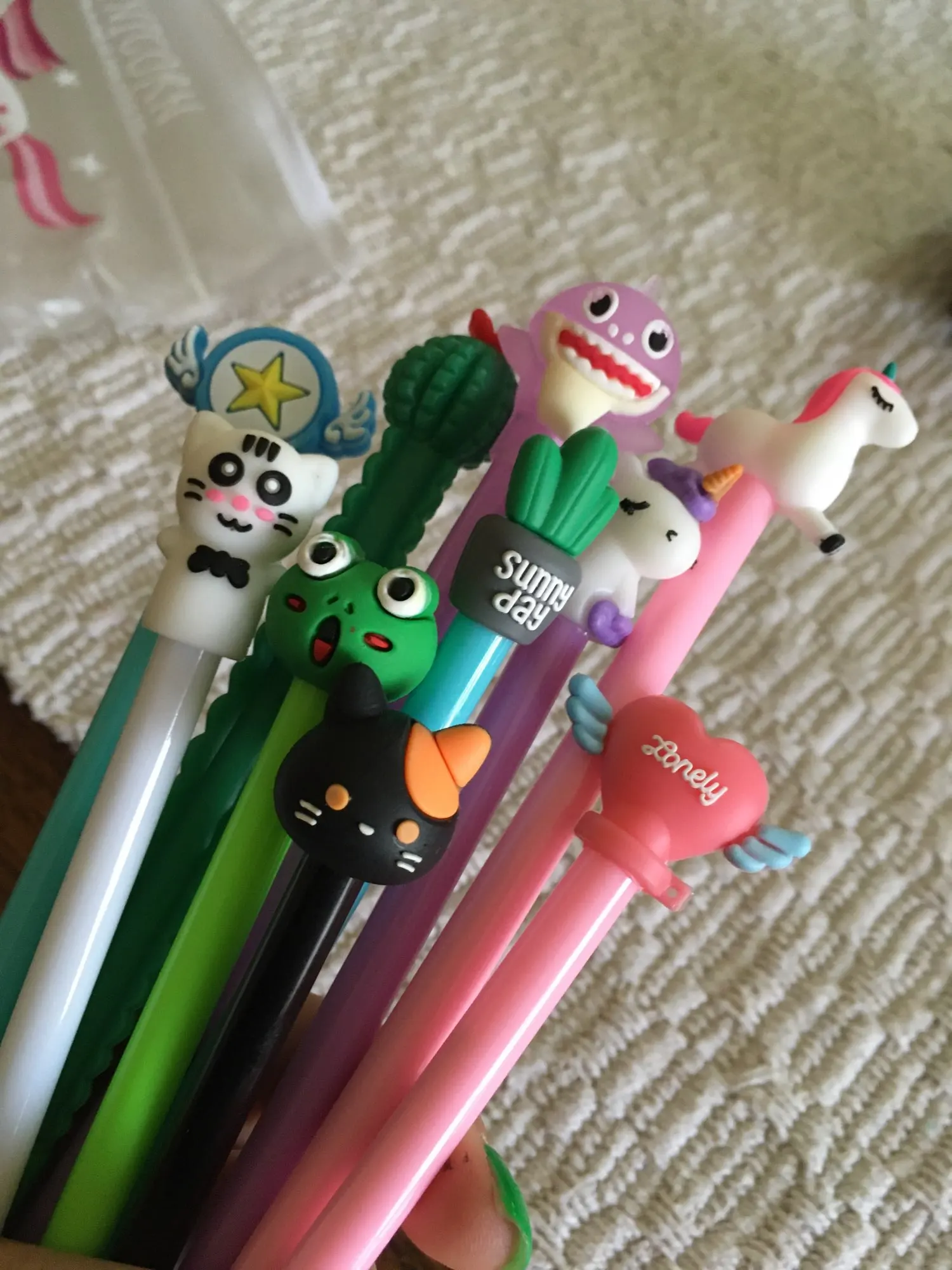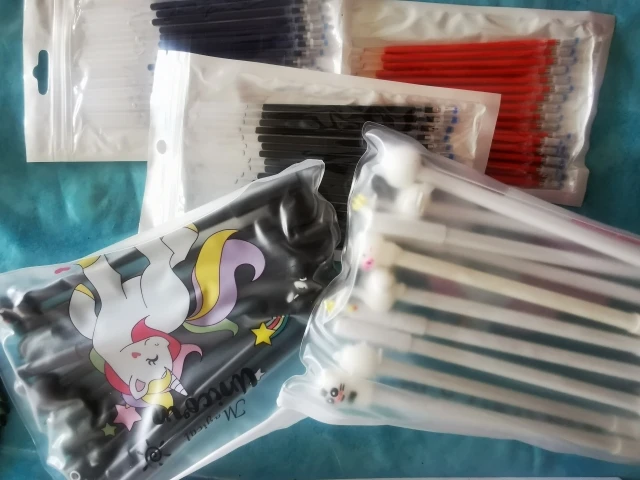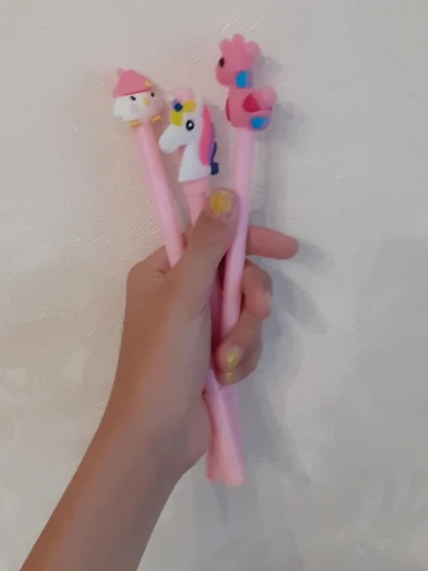 Более половины ручек не соответствуют выбранной фотографии (красочные), но моей дочери они понравились.