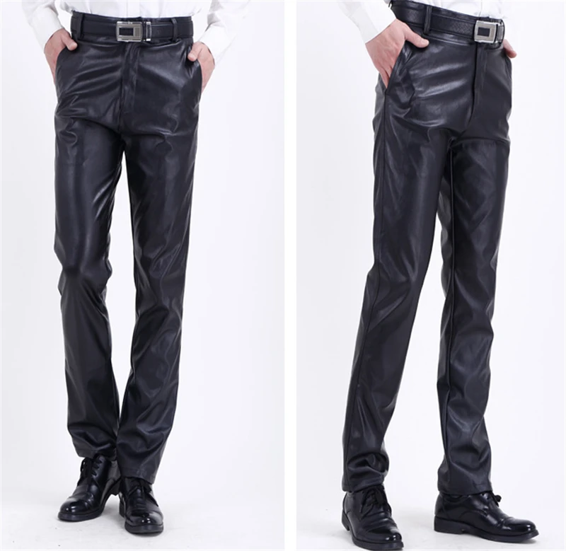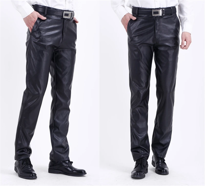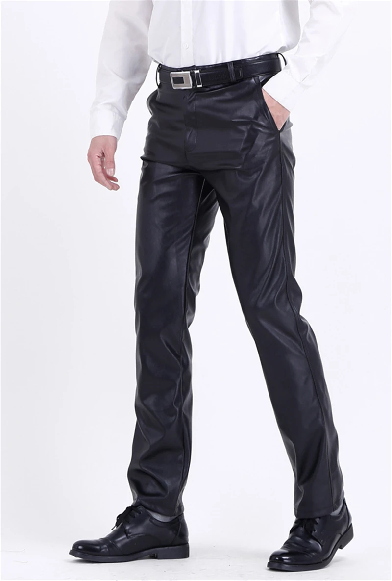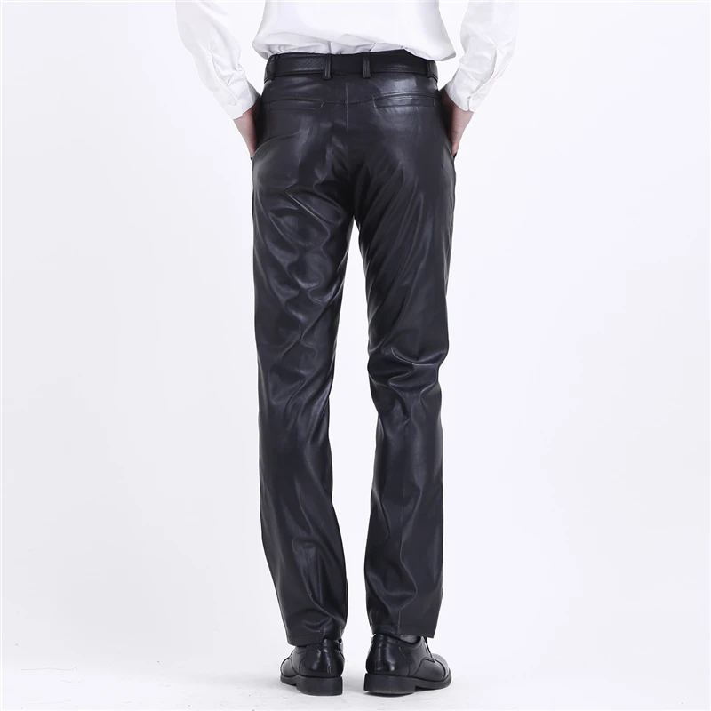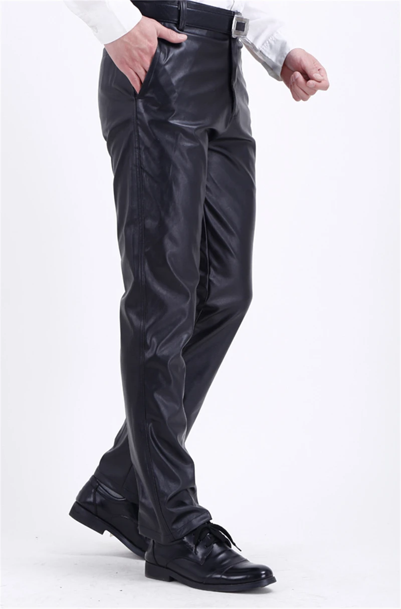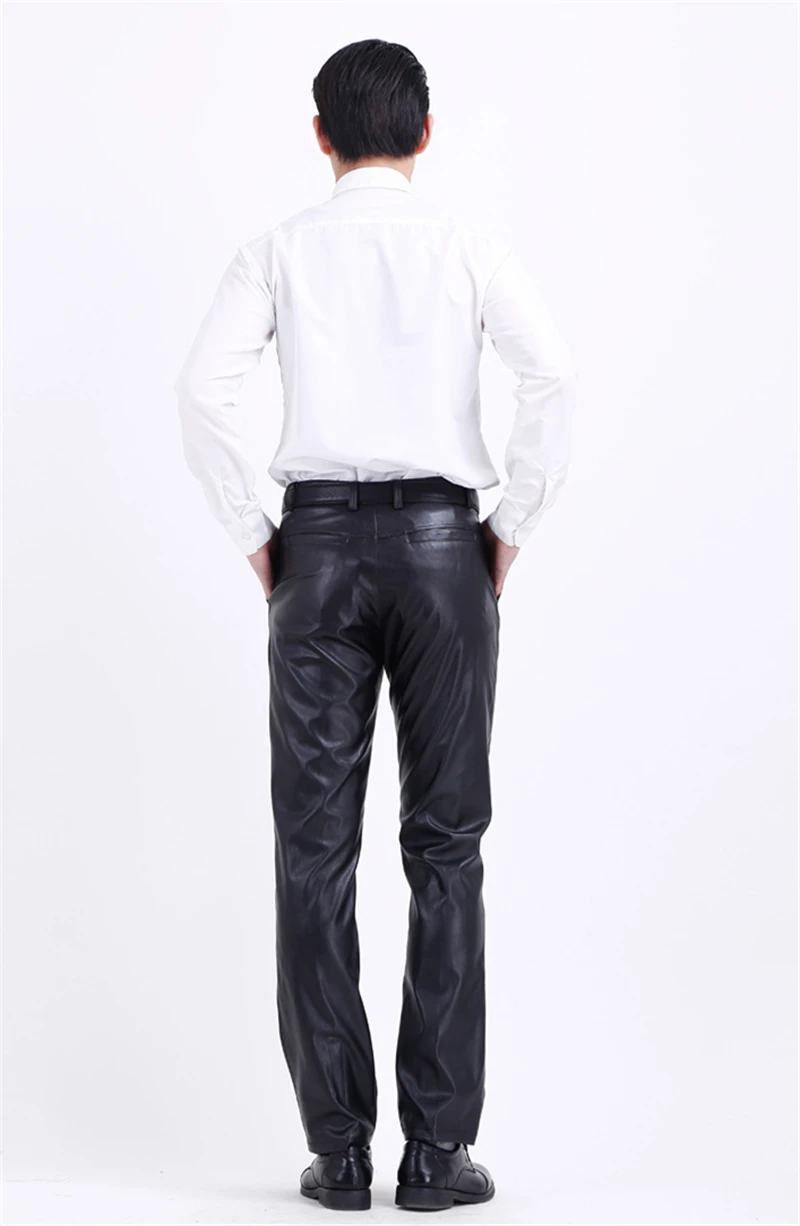 Толстяк размера плюс 45 46 мужские летние тонкие кожаные штаны, мужские Модные повседневные Прямые кожаные брюки мужские негабаритные свободные брюки для девочек