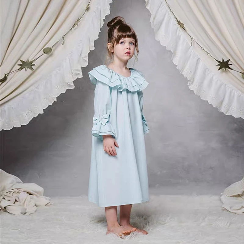 Милое детское платье лолиты для девочек мятно-зеленые ночные рубашки с рюшами. Детская Ночная рубашка в викторианском стиле для малышей, ночные рубашки, одежда для сна принцессы