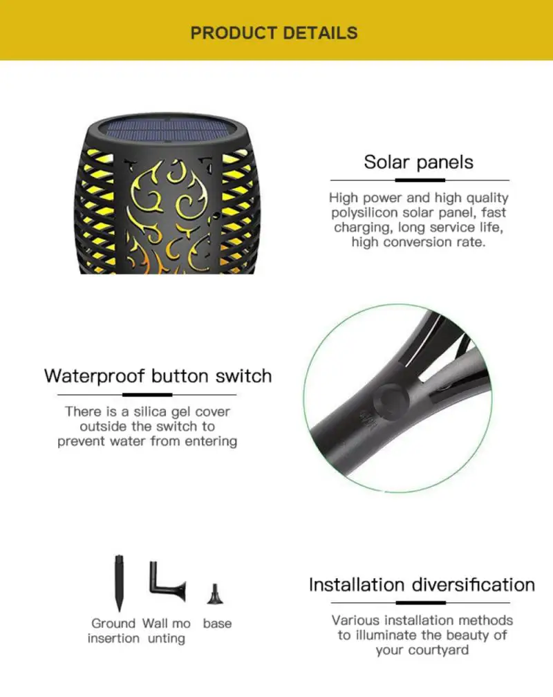 1. На солнечной приведенный в действие светильник s и автоматического включения/выключения От заката до Dawn】: данные танцевальные пламени фонарь светильник собирает солнечную энергию в течение всего дня под прямыми солнечными светильник, затем автоматически включается в сумерках и выключается при рассвете. Светильник работает на солнечной энергии, поэтому вы можете разместить его в любом месте под прямым солнечным светильник!