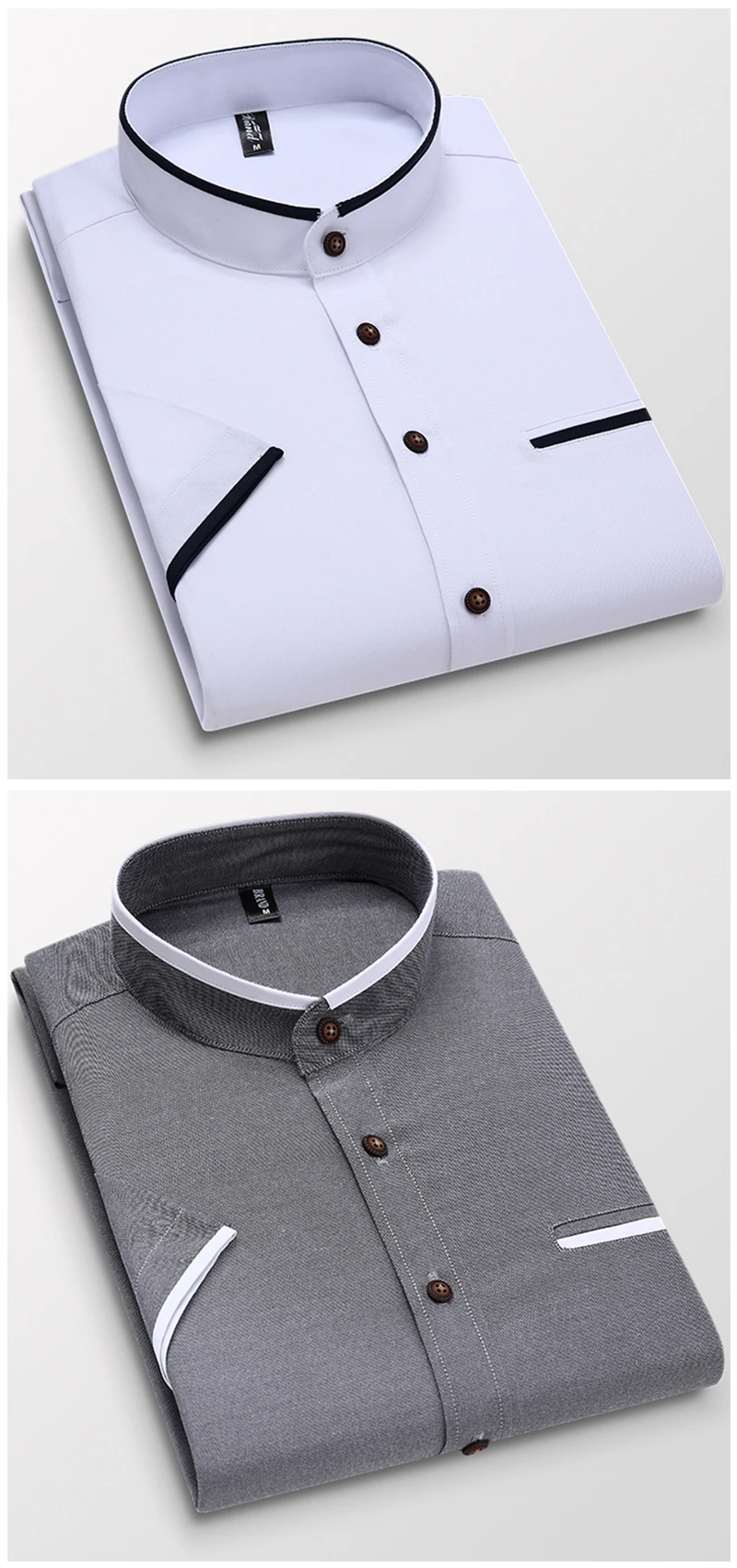 Мужская рубашка с коротким рукавом BROWON, приталенная Однотонная рубашка с воротником-стойкой, рубашка на пуговицах большого размера