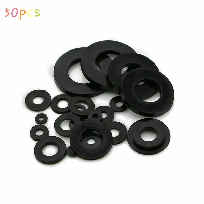 50 шт., черные пластиковые плоские прокладки из нейлона для шайбы M2, M2.5, M3, M4,M5, M6, M8, M10, M12, M14, M16, M18