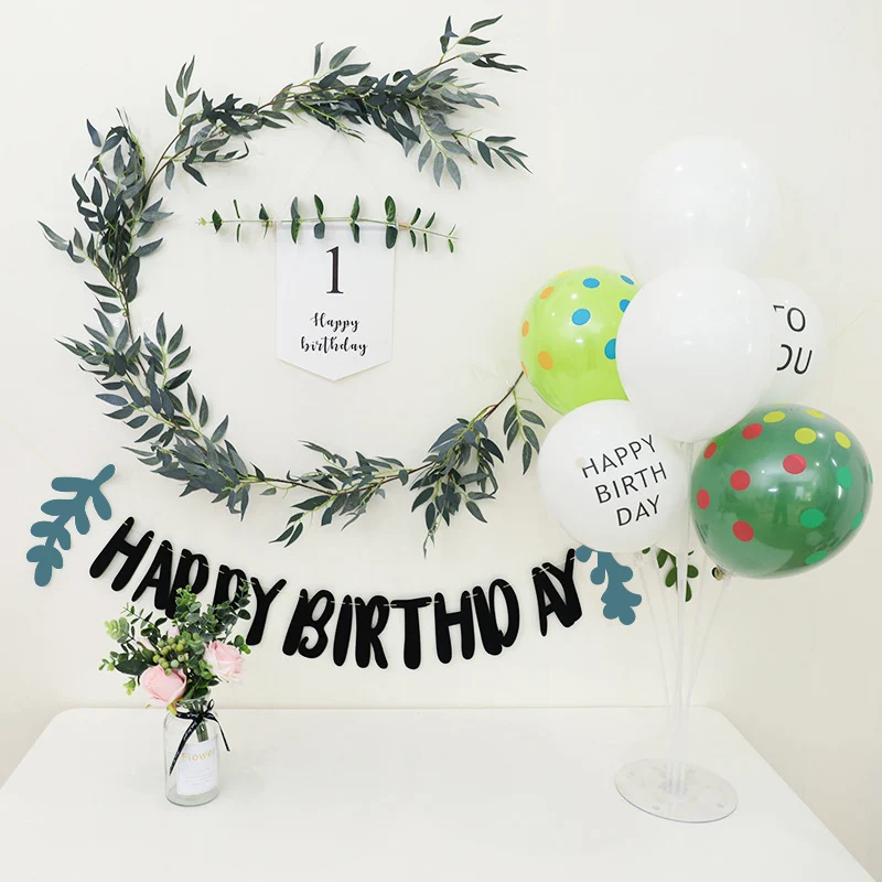 Посылка включает:Баннер с днем рождения * 1 комплект, 1/2/3/4/5/6/7/8/9 картон * 1 комплект, длинные листья * 1 штука