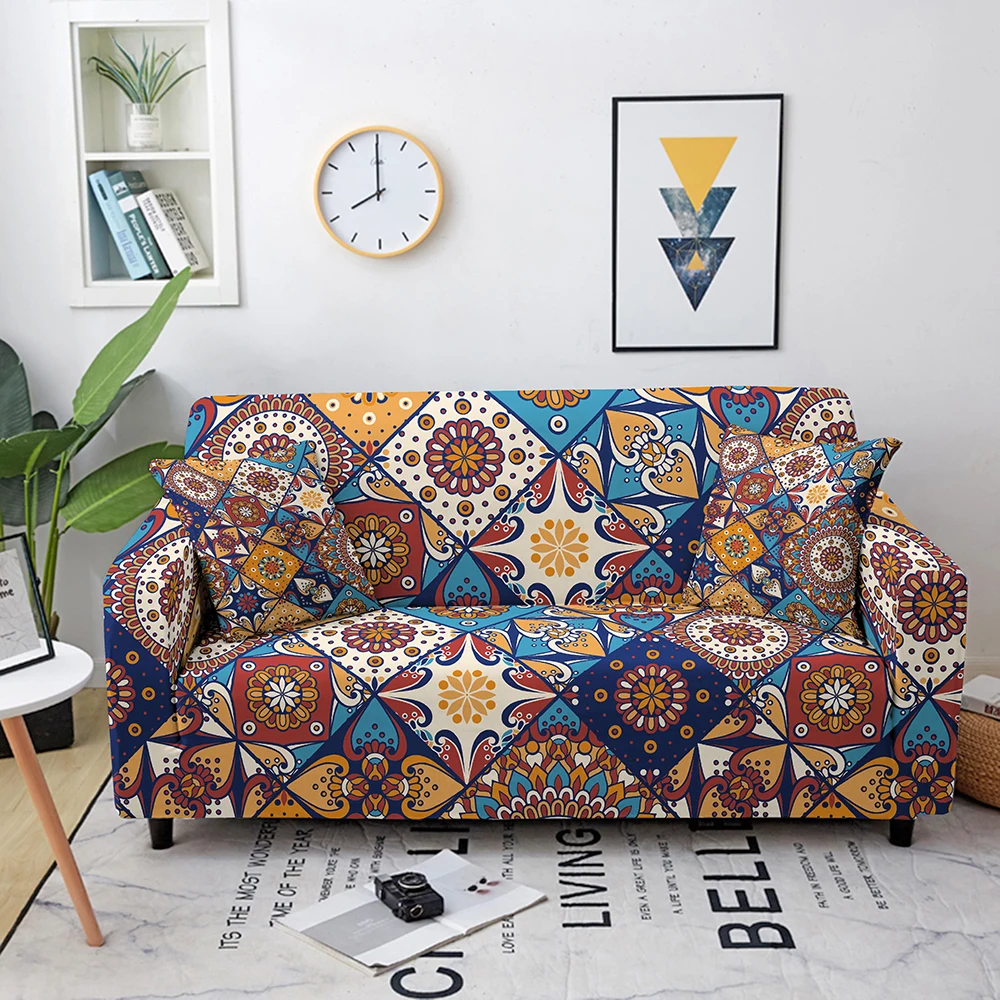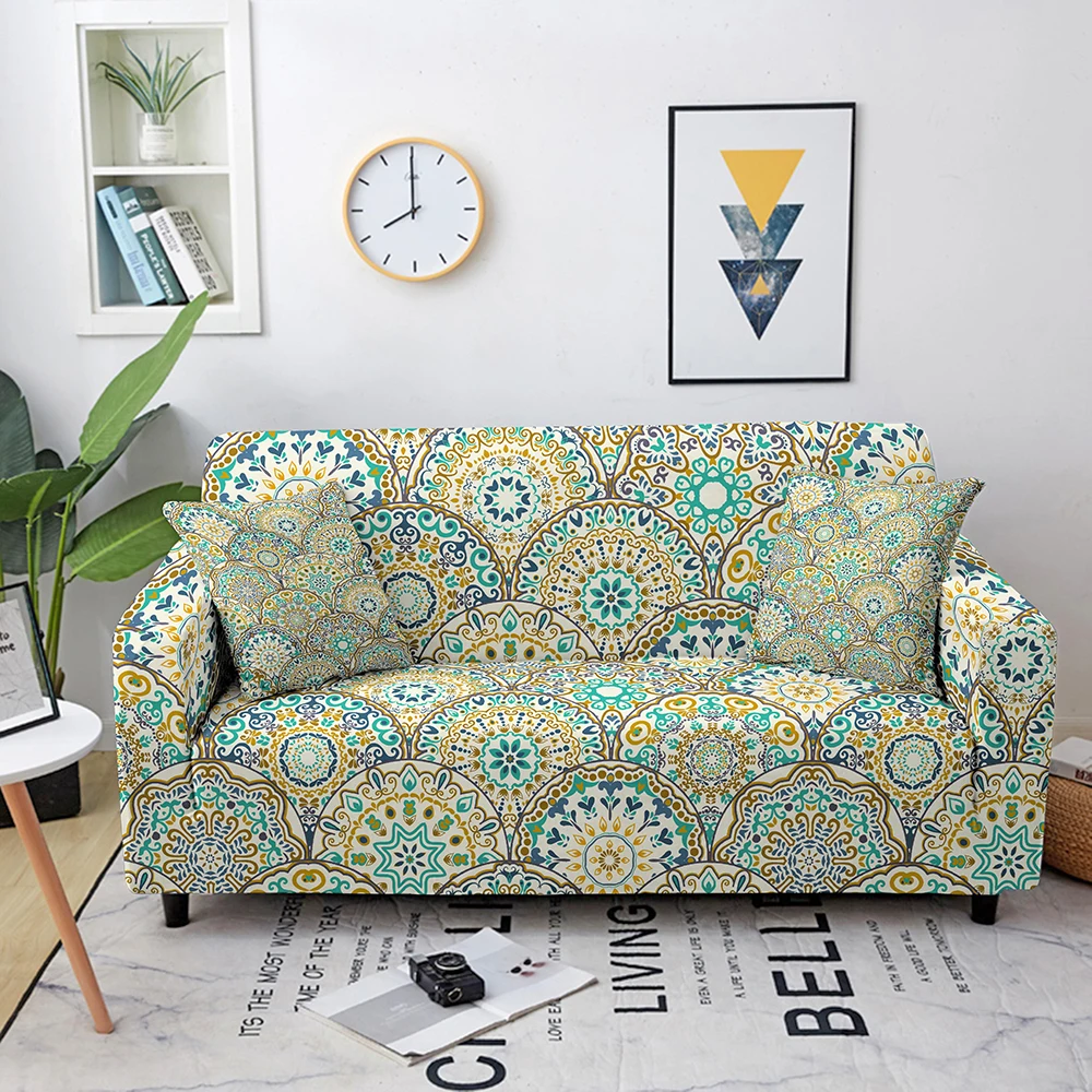 Эластичный чехол для углового дивана, чехол из спандекса с принтом мандалы, L-образный чехол для дивана в гостиную