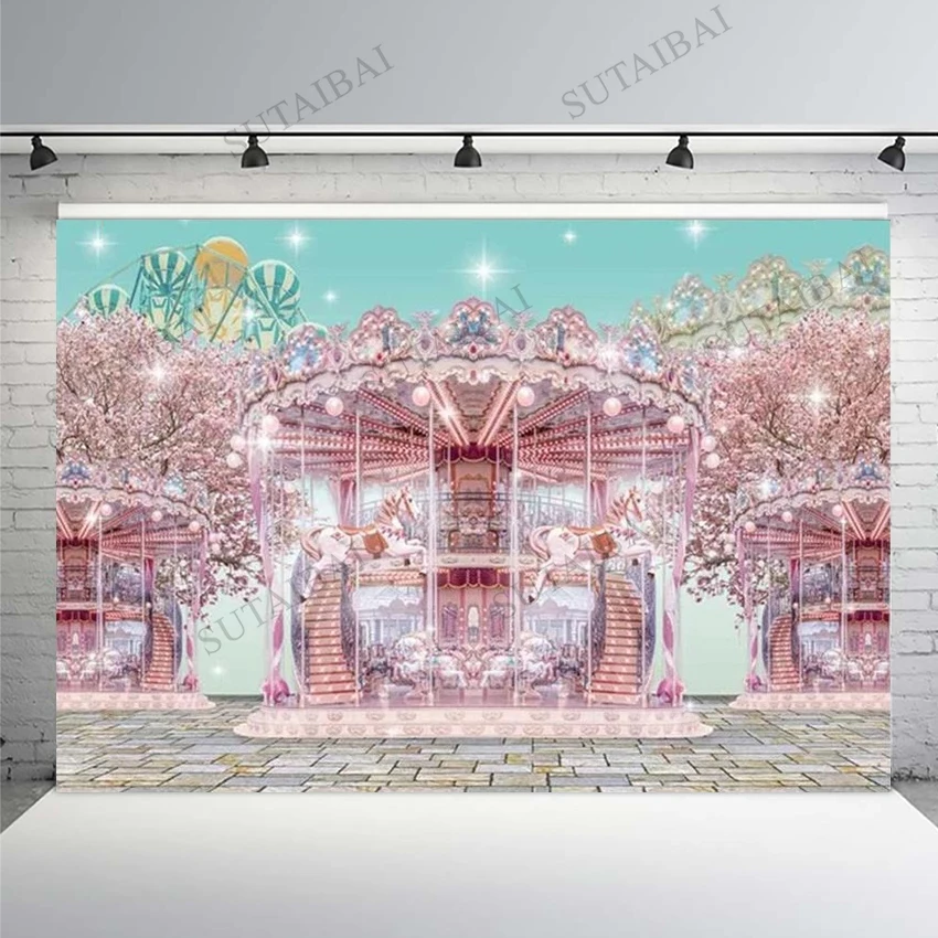 Виниловые фоны для фотостудии карусель Блестящий сказка Страна Чудес дети фотостудия фон стенд для фотосъемки