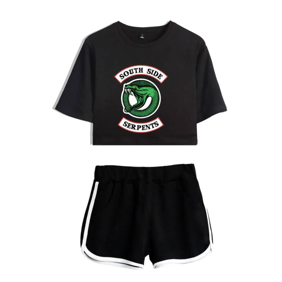 Классический комплект из двух предметов Harajuku Riverdale, летняя сексуальная хлопковая Футболка с принтом, новый спортивный костюм, короткие шорты Riverdale, популярный
