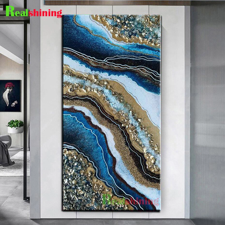 Большая 5d алмазная живопись сделай сам, абстрактная Золотая синяя морская волна, алмазная вышивка, полная мозаика, живопись, пейзаж, N2144
