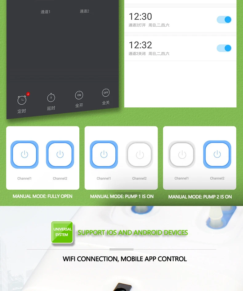 Работает через приложение eWeLink, программируется с телефона, есть режим включения на интервал времени с шагом в полсекунды. Пока единственный недостаток - не смог сходу подключиться к двухдиапазонному роутеру, к старенькому однодиапазонному приконнектился влёт.