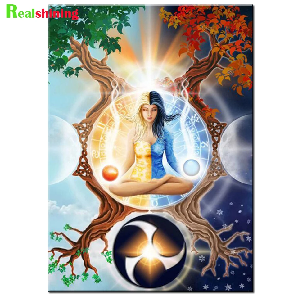 Четыре сезона, дерево, Бог, сделай сам, алмазная живопись, Инь Янь, искусственная квадратная Круглая Мозаика, пейзаж, N2147