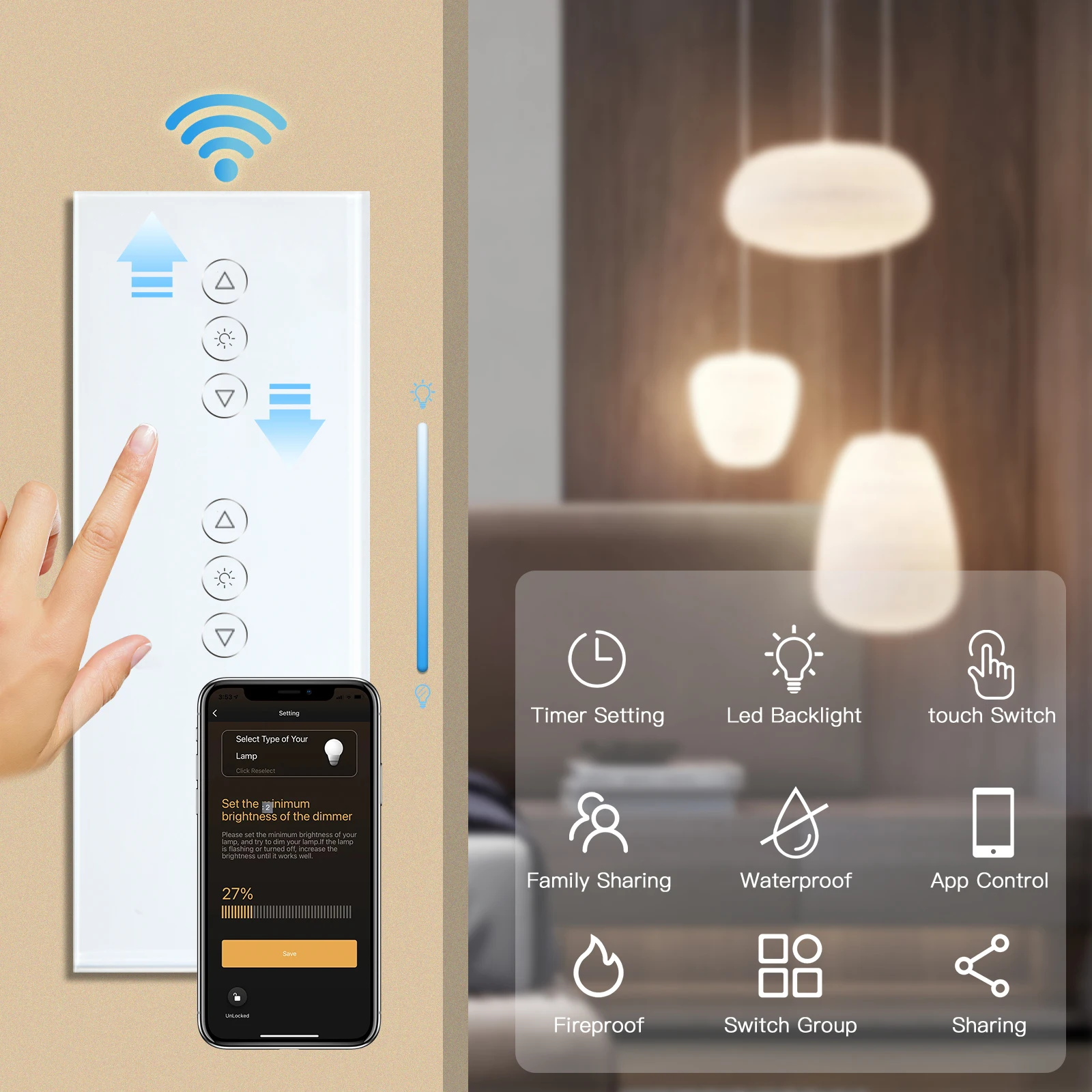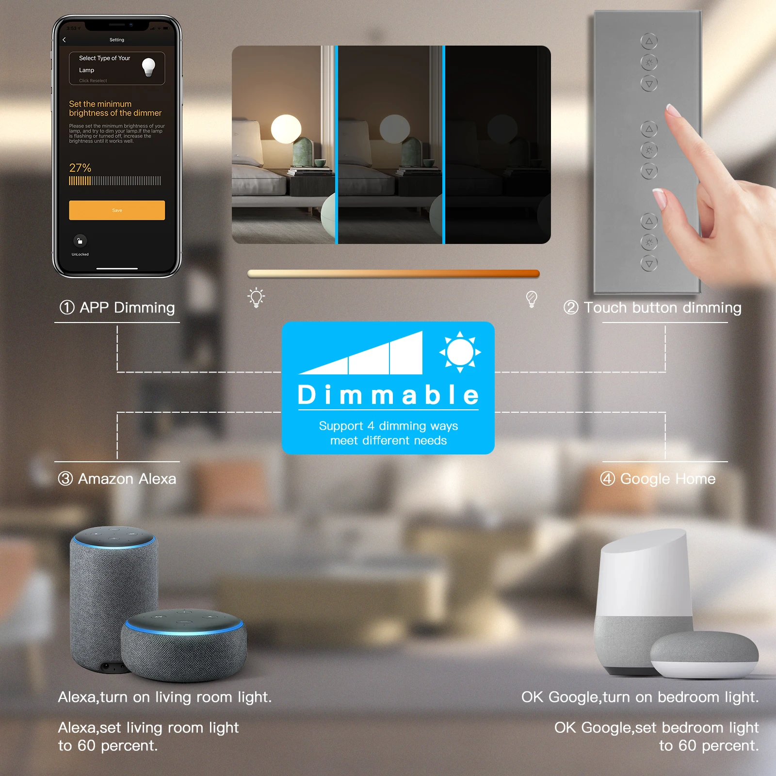 Умные настенные сенсорные переключатели Bseed, Wi-Fi диммер с управлением через приложение