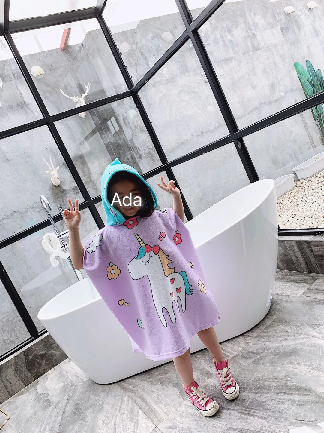 Полотенце-пончо для серфинга, единорог, Русалка, детское пляжное полотенце, махровая ткань, банный халат, банное полотенце для детей, для мальчиков и девочек, плавающий сухой Халат