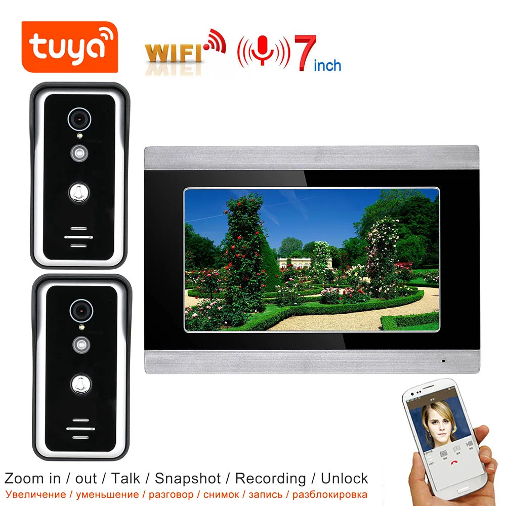 TUYA 7 дюймов 1/2-монитор 2-камера видеодомофон WIFI видеодомофон домашняя домофон
