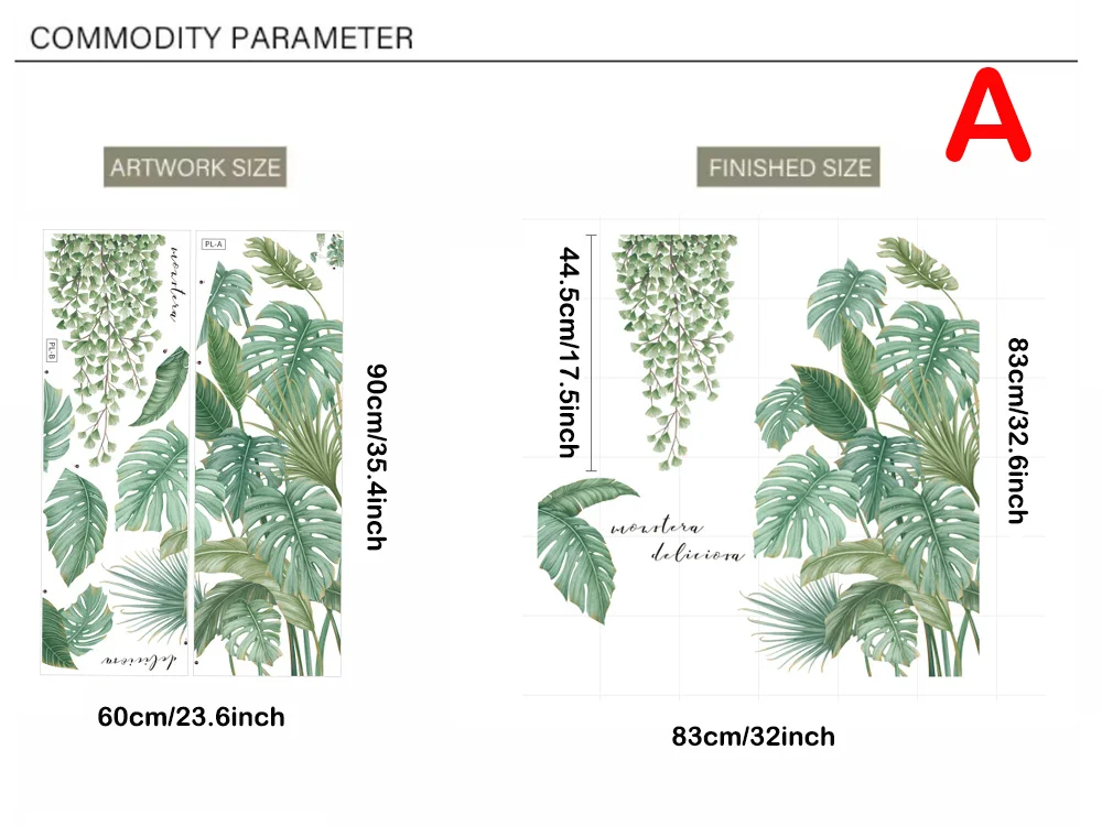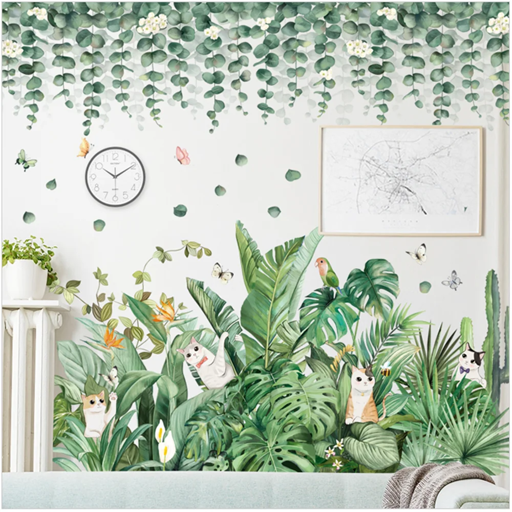 Тропические растения и листья наклейки на стену в скандинавском стиле для гостиной, спальни, экологичные виниловые наклейки на стену наклейки, художественный постер, домашний декор
