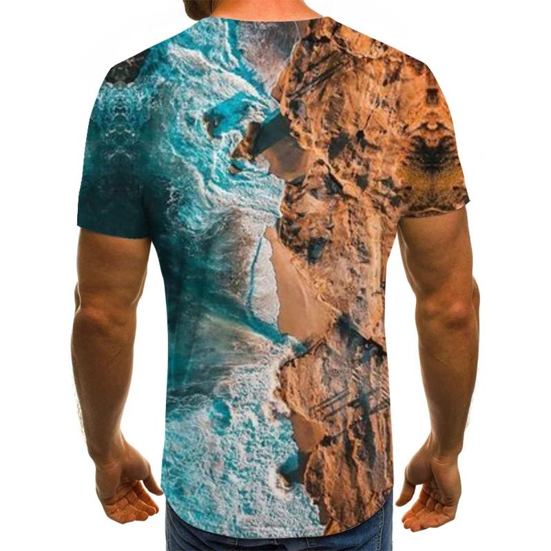 Футболка мужская с рисунком прибрежного пейзажа, Повседневная модна...
