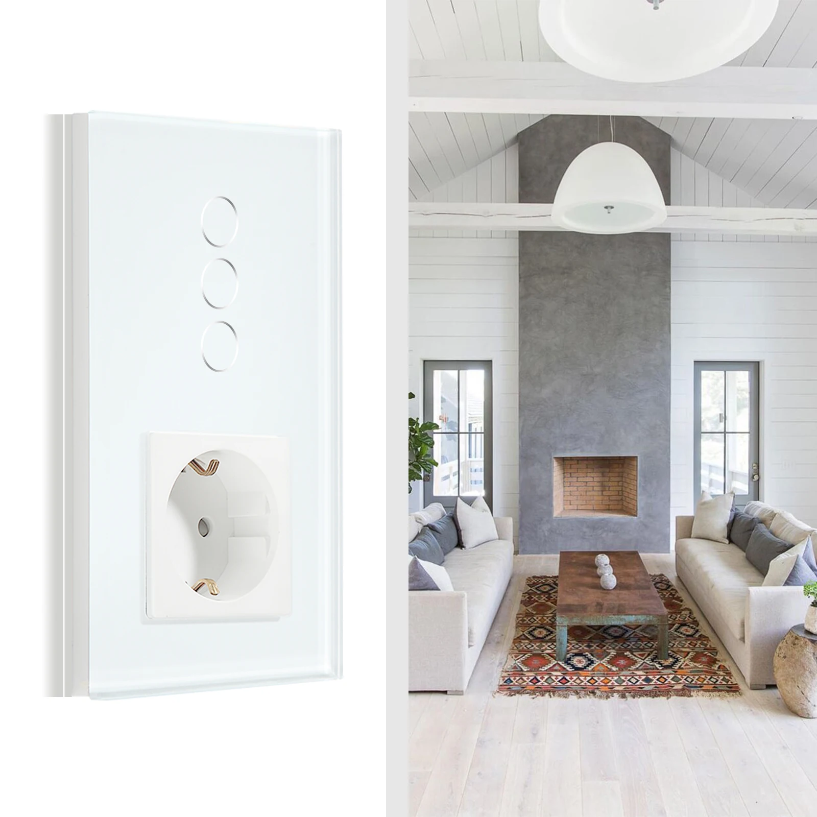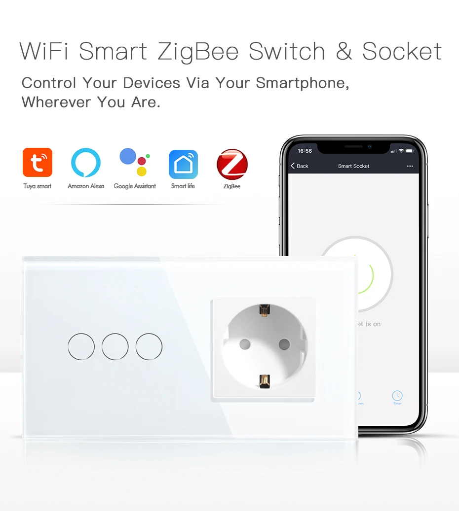 Сенсорный выключатель BSEED Zigbee Tuya, 3 клавиши, Wi-Fi, с розеткой европейского стандарта, голосовое управление через приложение, работает с Alexa Google Home