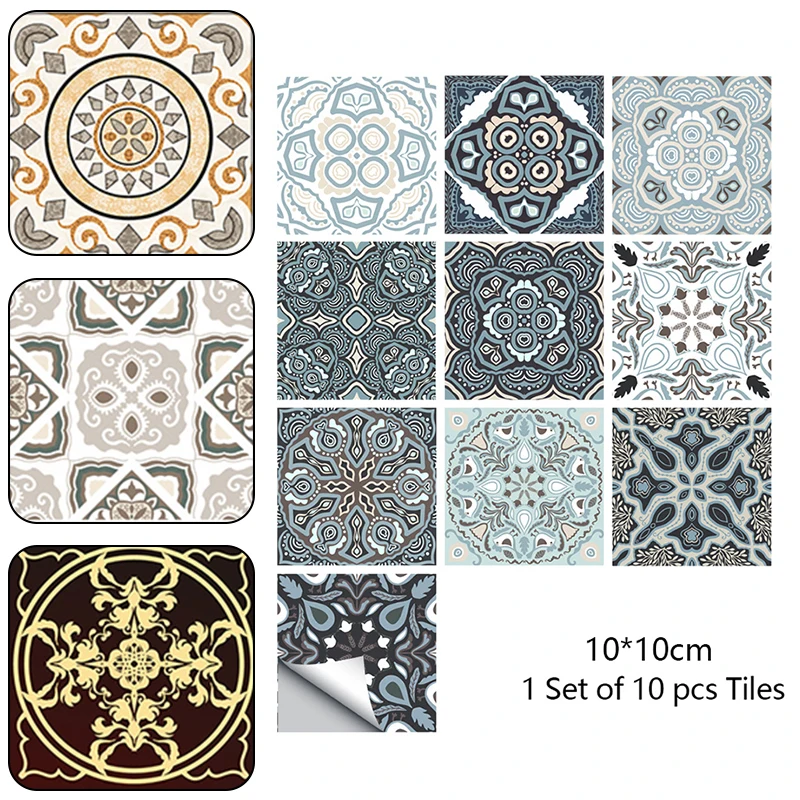 10 шт., водостойкие наклейки для плитки в стиле ретро, 10 х10 см