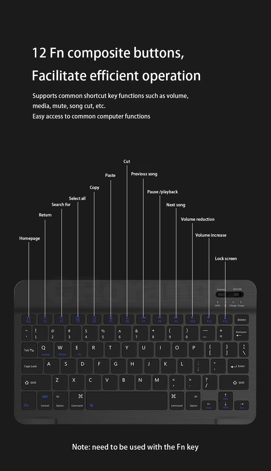 1. Широкая совместимость:Используется со всеми четырьмя основными операционными системами, поддерживающими Bluetooth (iOS, Android, Mac OS и Windows) , совместим с iPad, iPhone и планшетами с поддержкой Bluetooth, ноутбуками и мобильными телефонами, такие как iPad air , iPad mini, iPad Pro, iPhone Xs Max и т. Д.2. Ультратонкий, легкий и портативный:Эта легкая bluetooth-клавиатура предназначена для тех, кому нужна портативная клавиатура, способная работать или играть, и особенно подходит для деловых поездок.3. Перезаряжаемый и автоматический режим сна:Универсальная беспроводная bluetooth-клавиатура использует встроенный литиевый аккумулятор, его можно легко заряжать через usb-кабель, не нужно менять аккумулятор. Встроенная перезаряжаемая батарея невероятно долговечна, время работы в режиме ожидания составляет около 6 месяцев между зарядами. Беспроводная клавиатура bluetooth может автоматически войти в режим сна для экономии энергии.4. Стабильное соединение:Передовая технология Bluetooth обеспечивает соединение без кабеля с рабочим диапазоном 10 метров. Но для настольного ПК-ноутбука без функции bluetooth, вам необходимо вставить сторонний вечерние bluetooth-адаптер (не входит в комплект) для установки драйвера bluetooth перед использованием.5. Удобный и тихий ввод текста:Бесшумные низкопрофильные клавиши обеспечивают совершенно новый уровень комфорта на кончиках ваших пальцев. Кроме того, храните все ваши наиболее часто используемые функции и средства массовой информации ближе, чем когда-либо, выделенные Windows горячие клавиши.