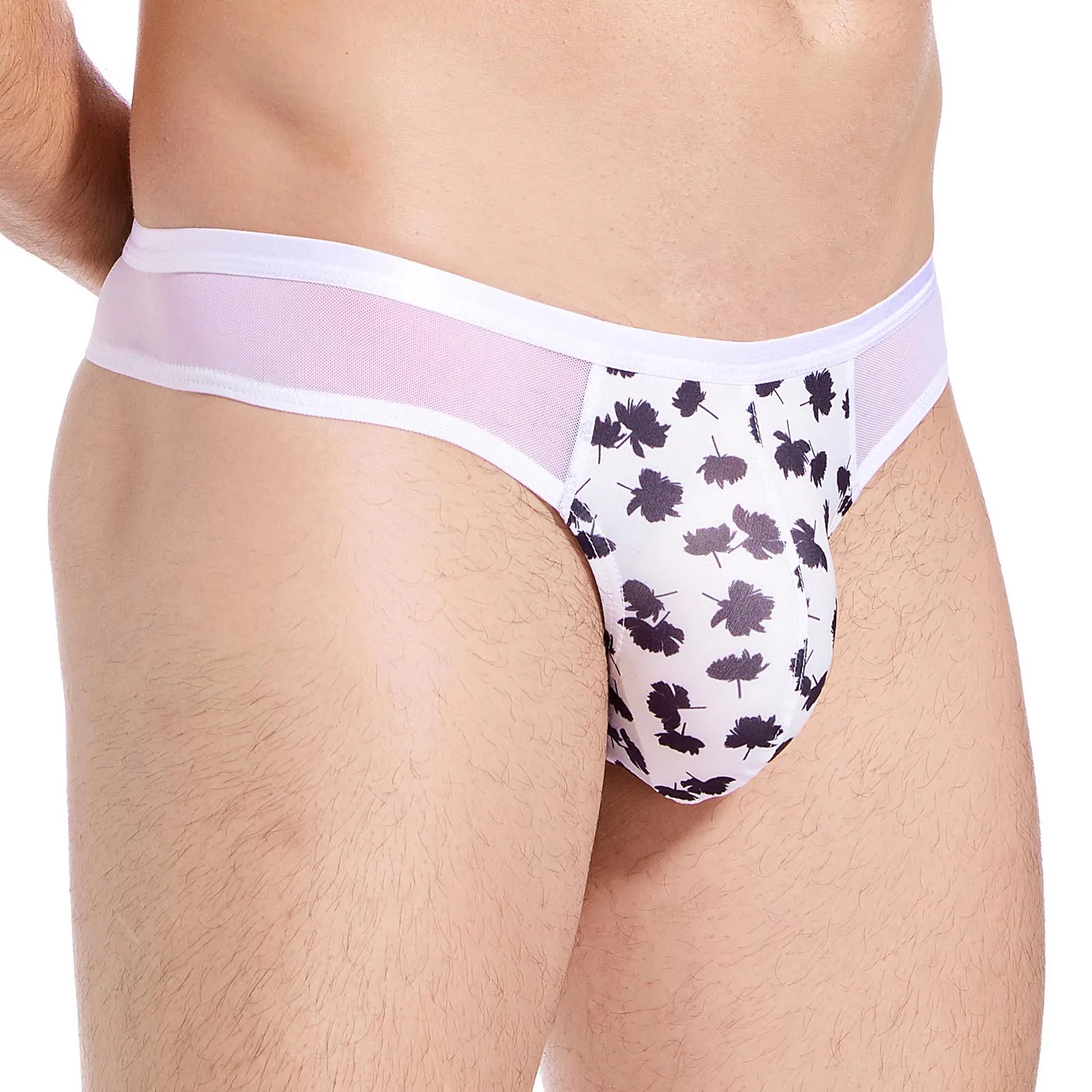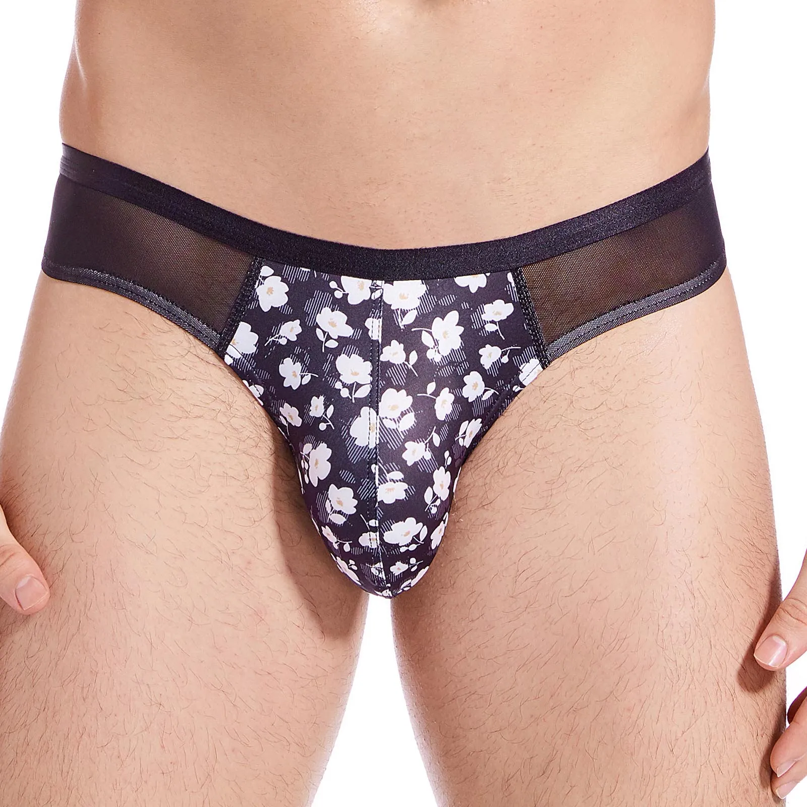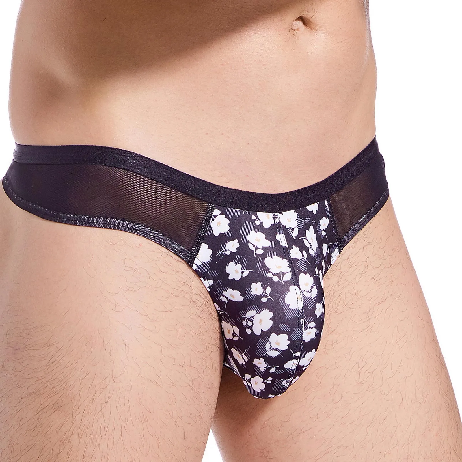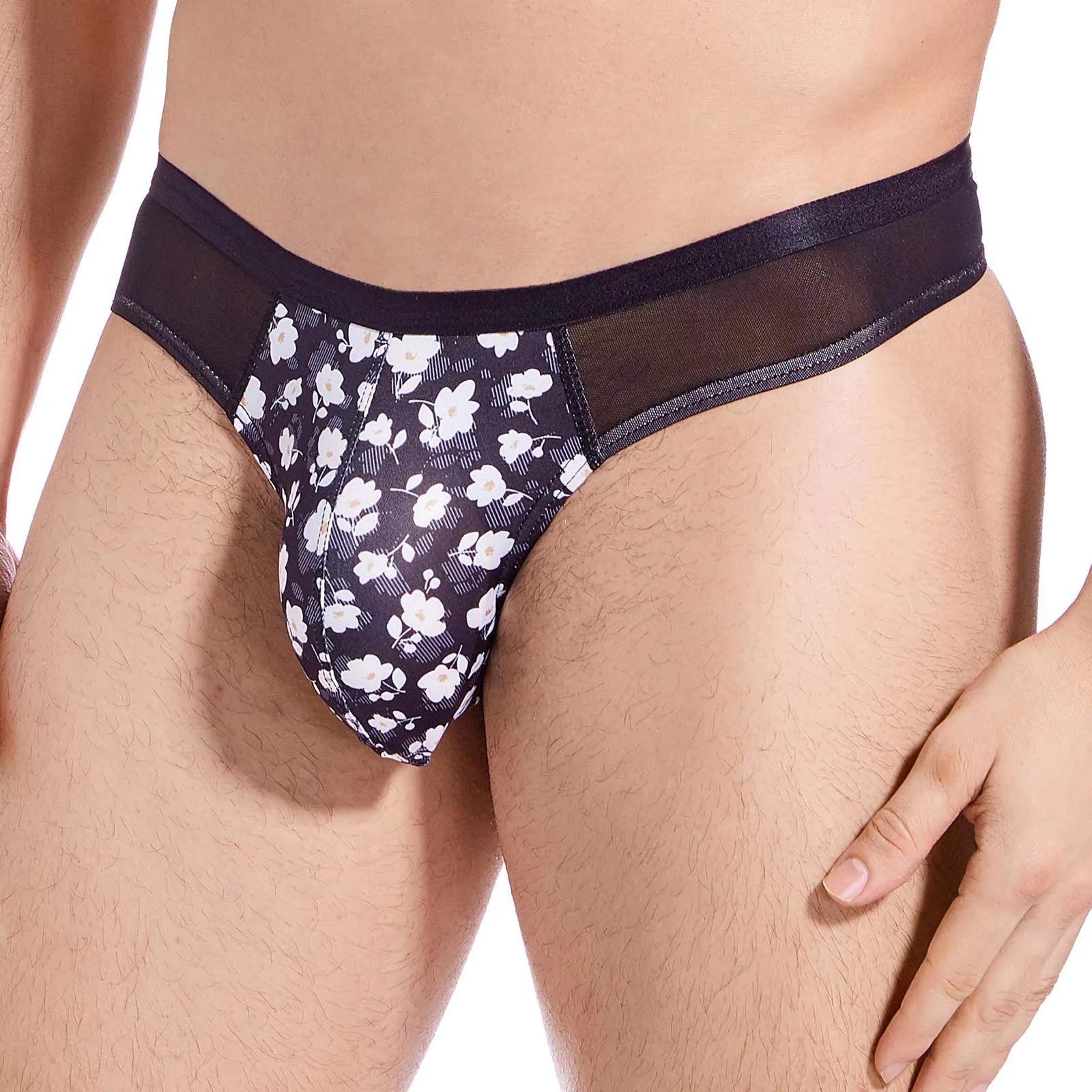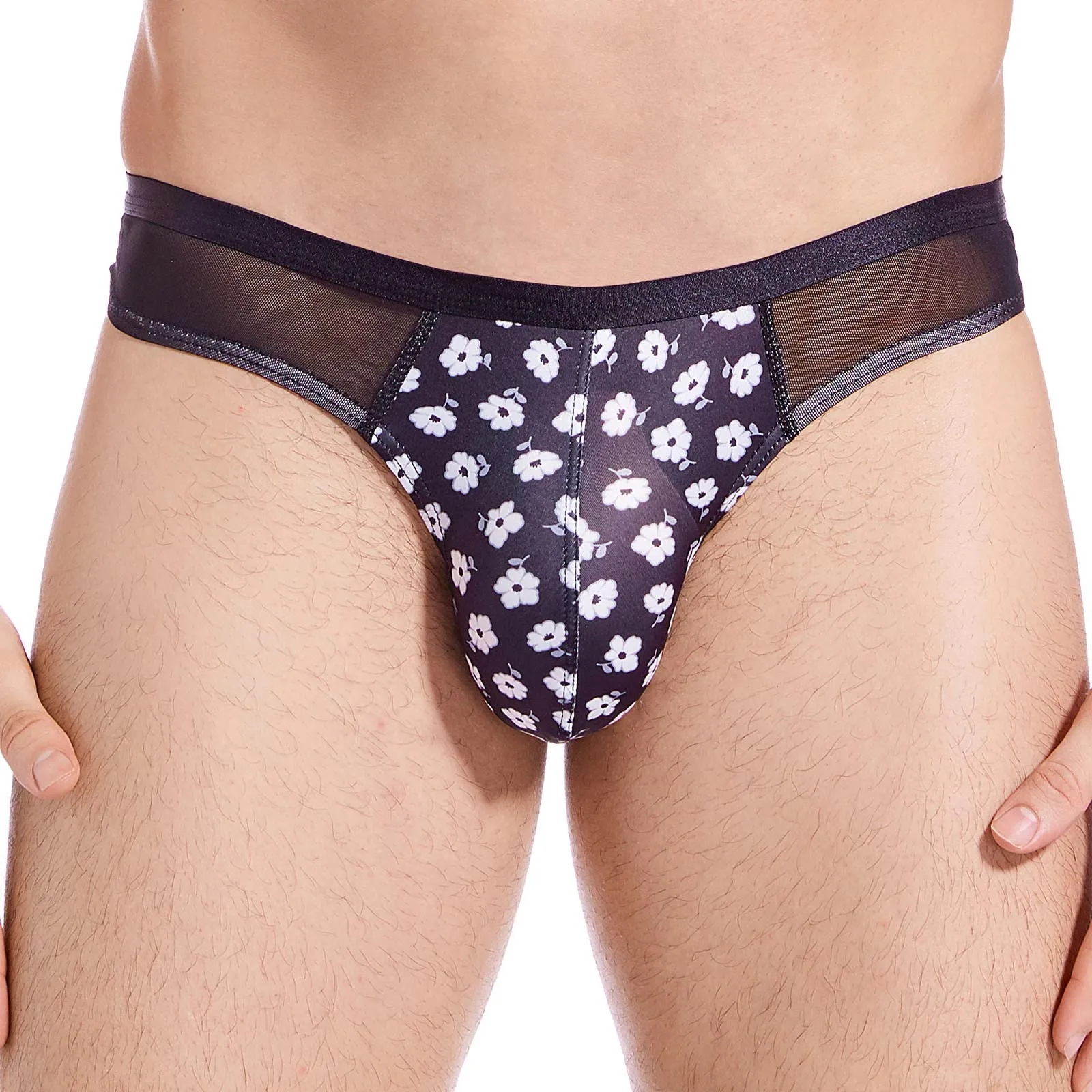 Сетчатые стринги, мужское тонкое нижнее белье с Т-образной спинкой, сексуальные прозрачные трусы с низкой талией Цветочные эластичные стринги с мешочком для пениса