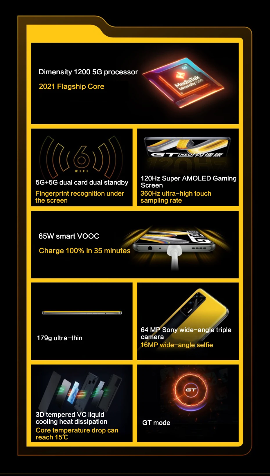 Оригинальный смартфон realme GT Neo Flash Edition, Процессор MTK Dimensity 1200, 65 Вт, зарядка аккумулятора 120 Гц, игровой экран SuperAMOLED, 64 мп, мобильный телефон на Android