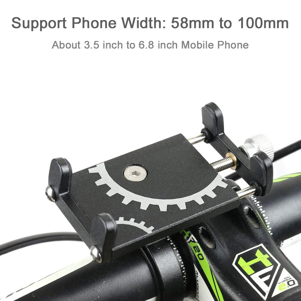 Материал: алюминиевый сплавЦвет: черный, серебристый, красныйШирина телефона: от 58 мм до 100 ммСовместимость: около 3,5 дюймов до 6,8 дюймов мобильный телефонРазмеры руля: от 20 мм до 31,8 мм в диаметреВес: 110 г