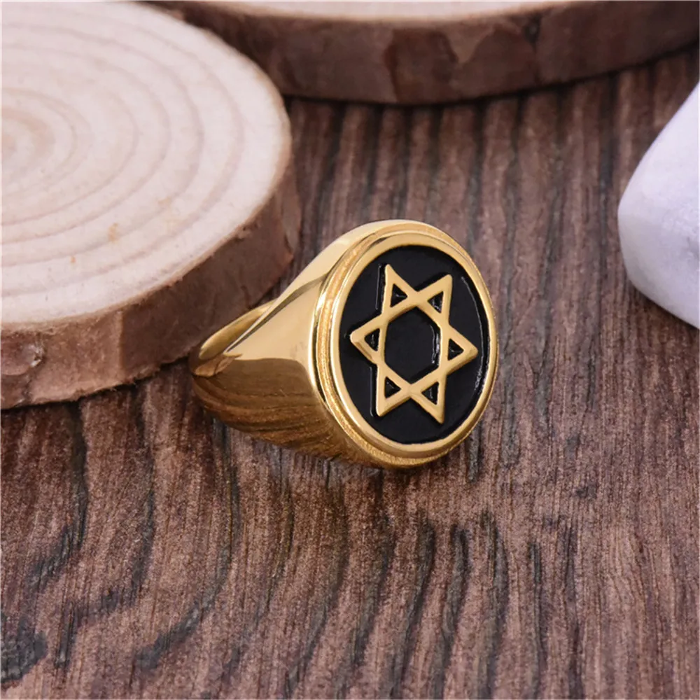 Панк звезда Давида кольцо из белого золота Цвет Нержавеющаясталь Винтаж круглый журнальный кольца для Для мужчин Простые Вечерние ювелирные изделия дропшиппинг