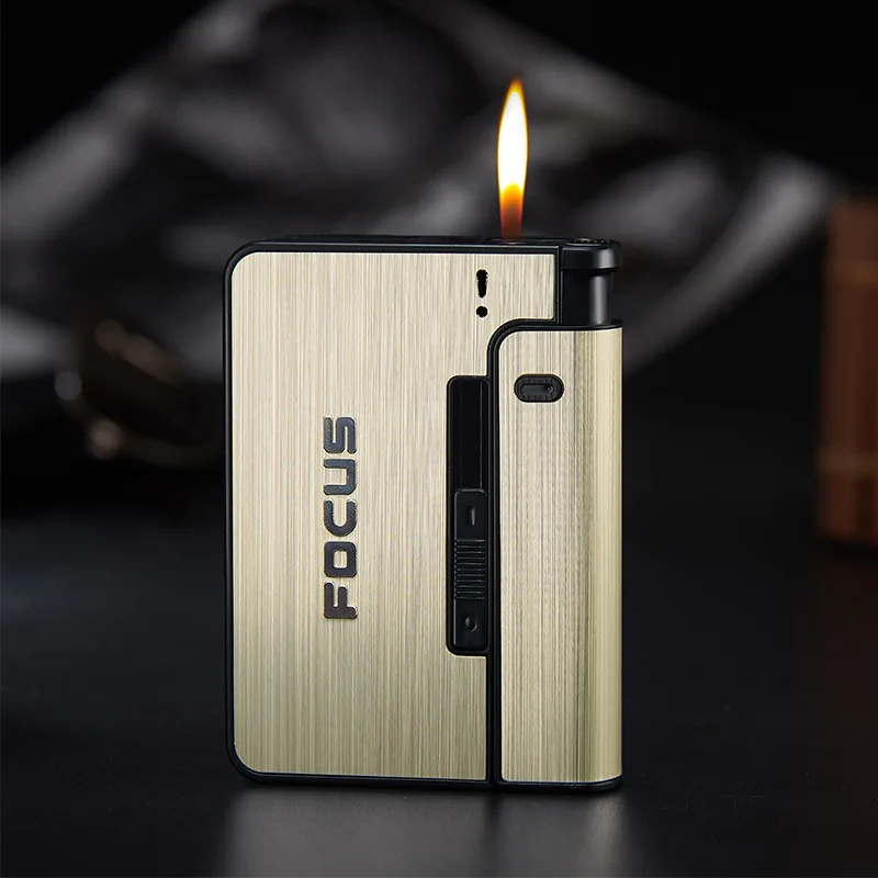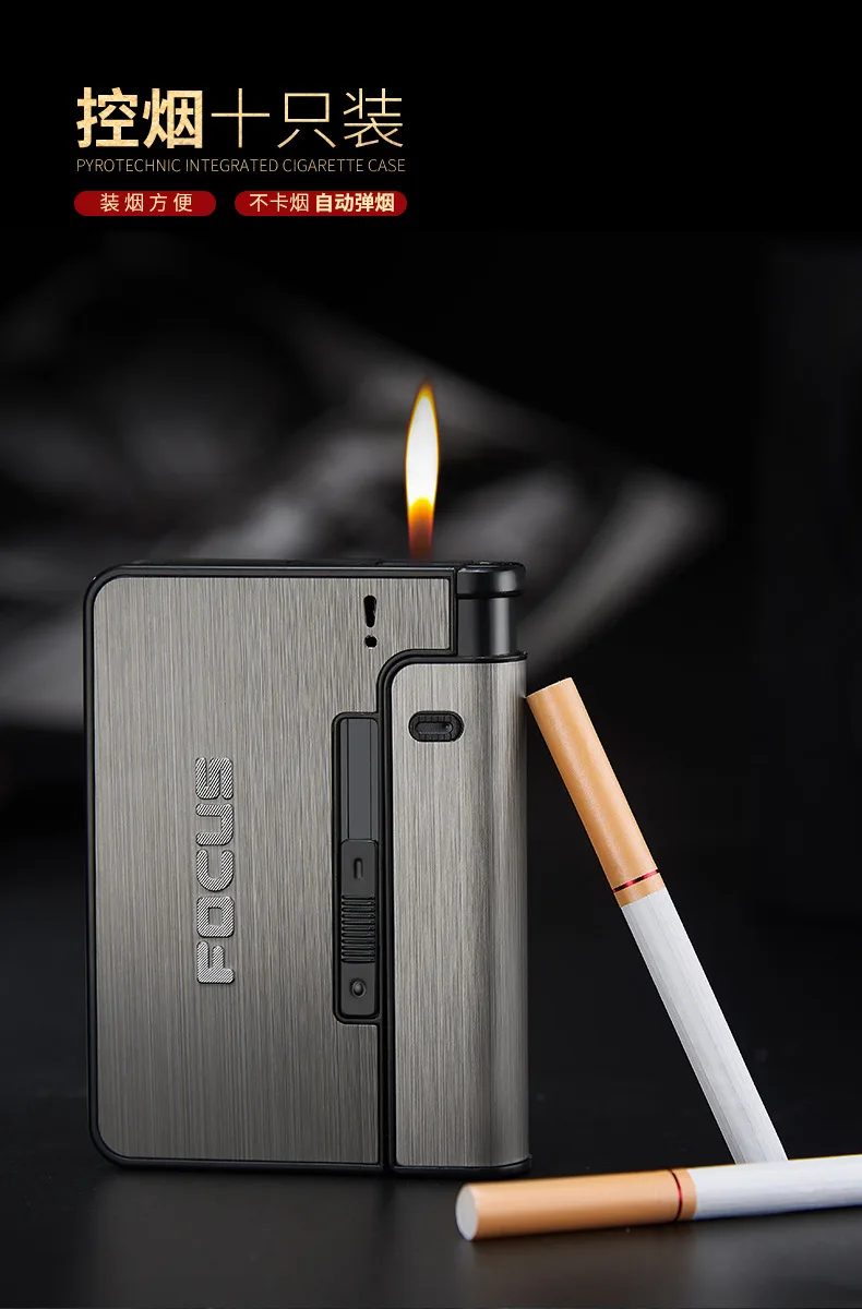 Автоматическая сигарета чехол 10 шт. сигарет Ёмкость можно установить на Зажигалка металлический портсигар для Для мужчин курение хороший подарок дропшиппинг