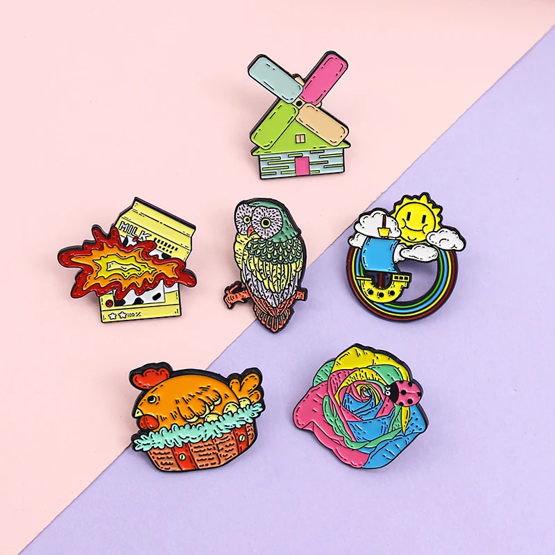 Кошка, лиса, крыса, курица, насекомое, божья коровка, броши с розами, животное, радуга, счастливое спасибо, эмалированная брошь-кнопка givin, ювелирное изделие, подарок для девочек и детей